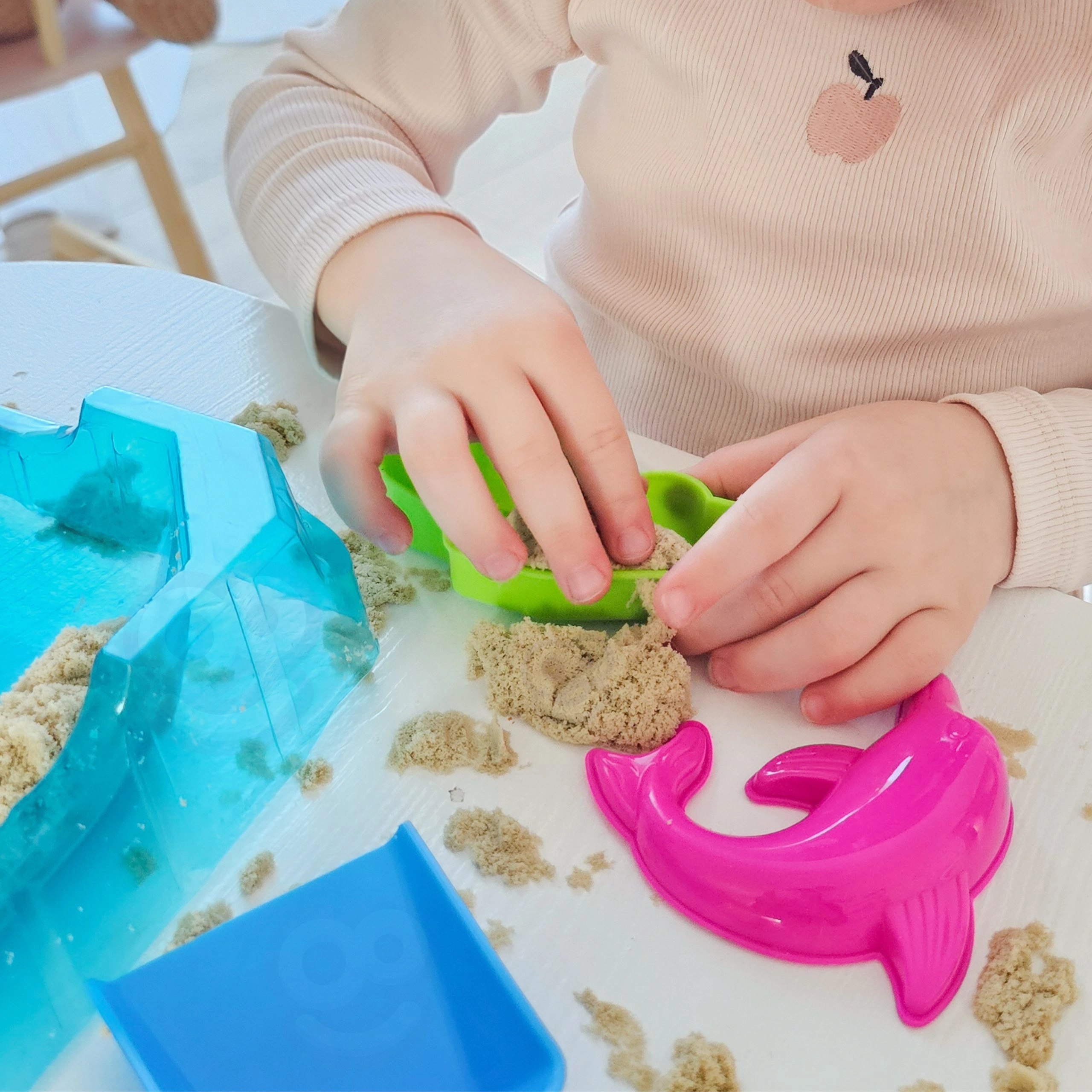 - Мек и сензорен пясък, приятен на допир, лесен за оформяне и не изсъхва
