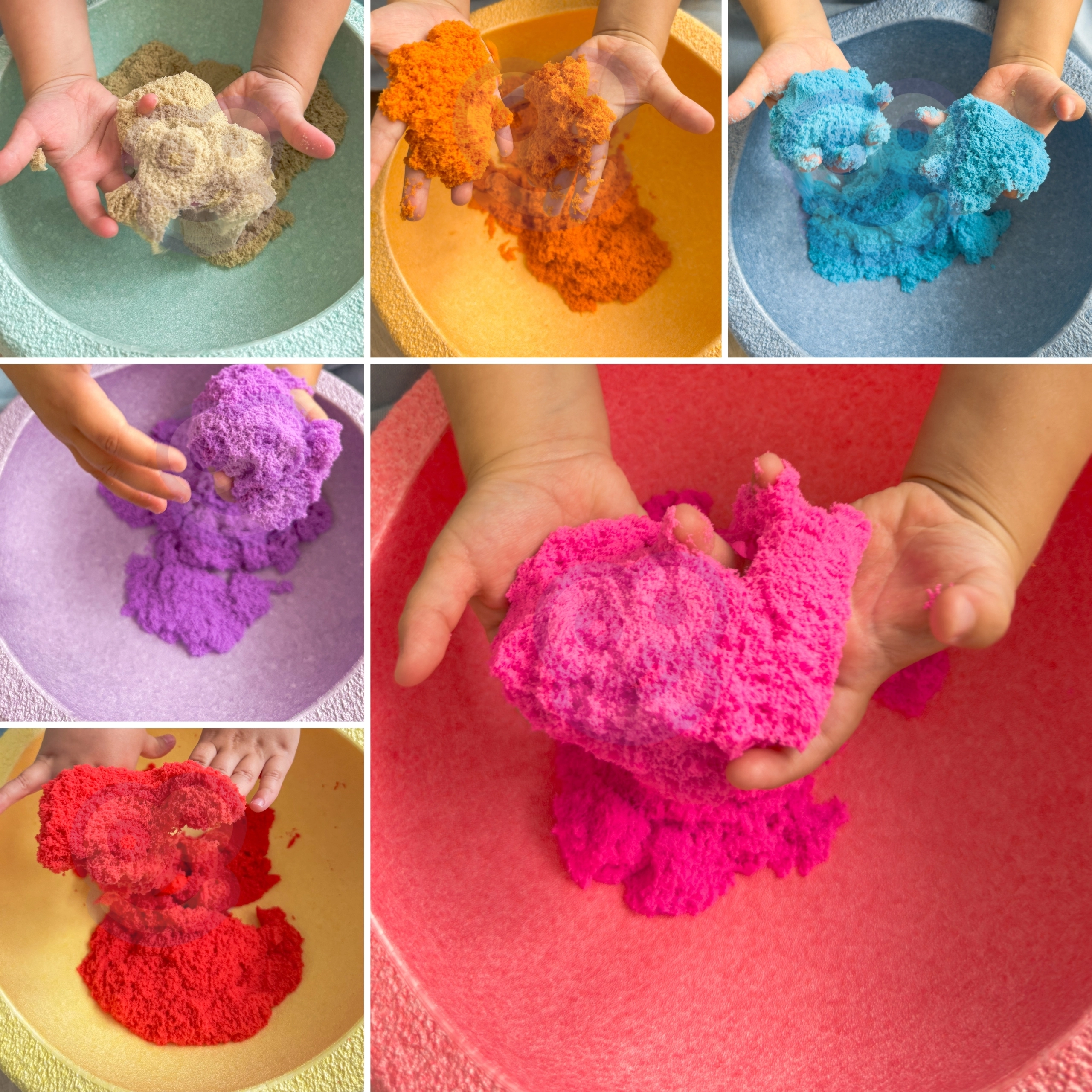 - 6 цвята, 1,2 кг кинетичен пясък за разнообразна игра