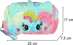 Козметичната чантичка е с очарователен дизайн с дъгов мотив и уникални ушички, което я прави чудесен естетичен аксесоар за всяка малка принцеса.
