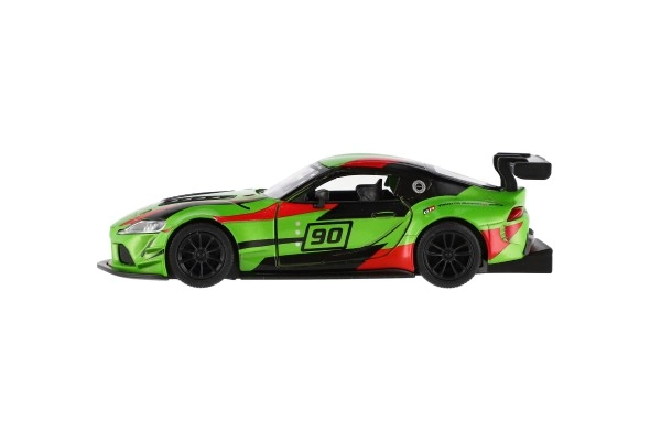 Този състезателен модел на автомобил Toyota GR Supra Racing е перфектният спътник за всеки фен на моторните спортове. Металният материал осигурява устойчивост и дълъг живот, а детайлната изработка с отварящи се врати придава реалистичен вид. Поставете го на рафт или го изведете на състезателната писта в историите на вашите деца. Моделът е наличен в четири цветови варианта, така че всеки ще открие своя любим.