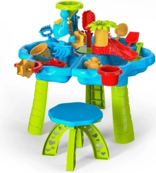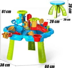 Комплект 3в1 от марката Woopie предлага перфектно забавление за деца, които обичат да експериментират, творят и прекарват активно време навън. Благодарение на множеството аксесоари и функционалната масичка със столче, децата могат да строят пясъчни замъци, да преливат вода и да откриват света чрез сетивата.