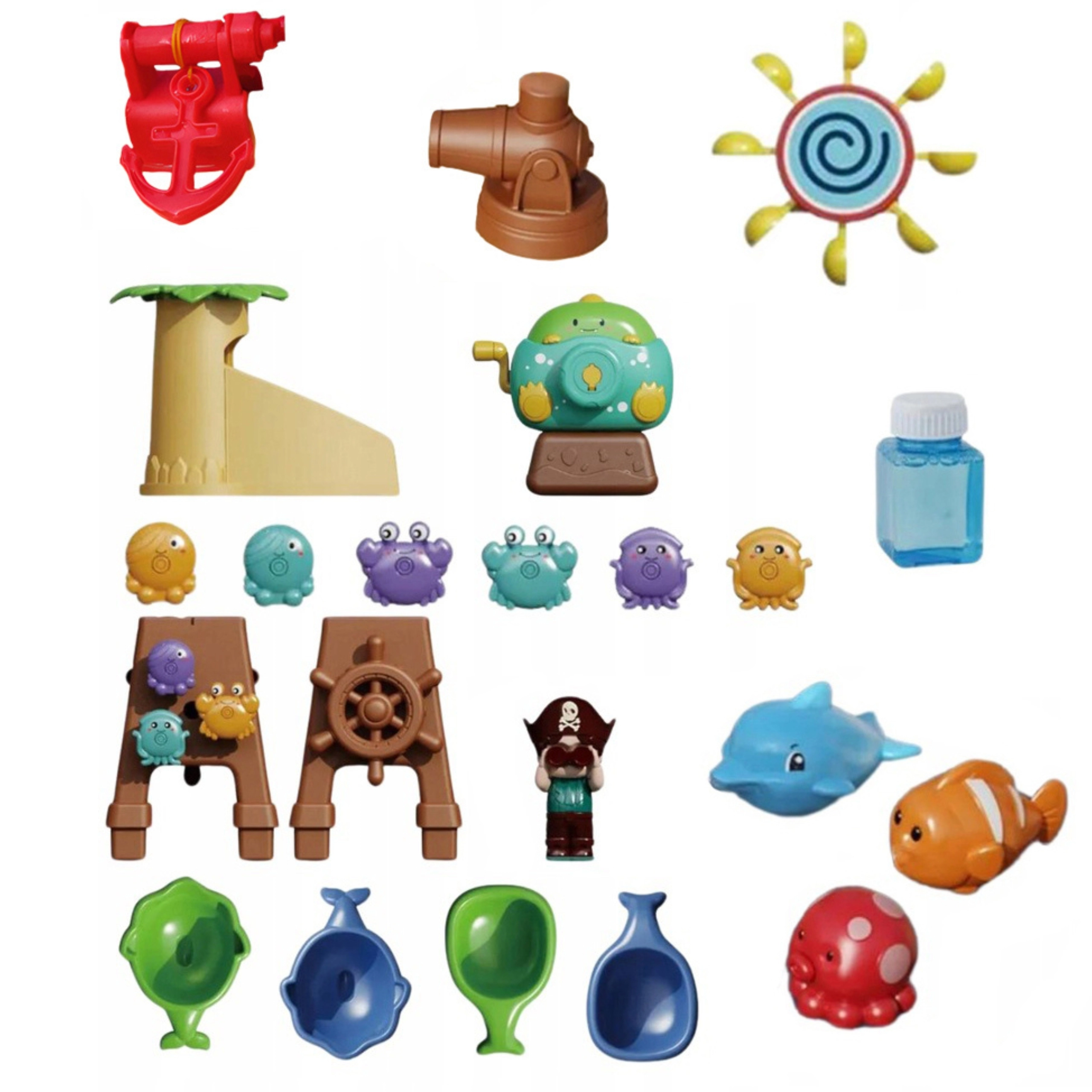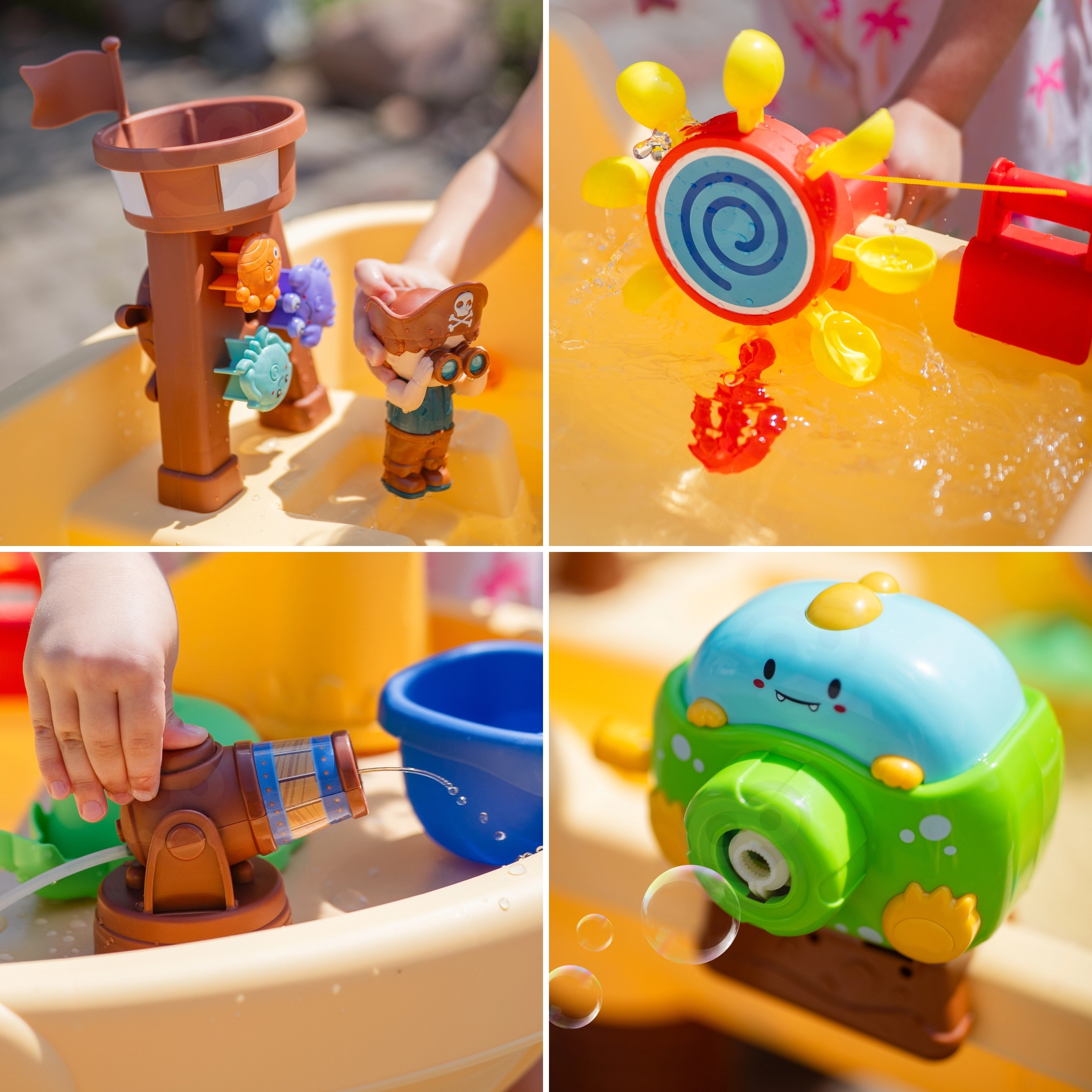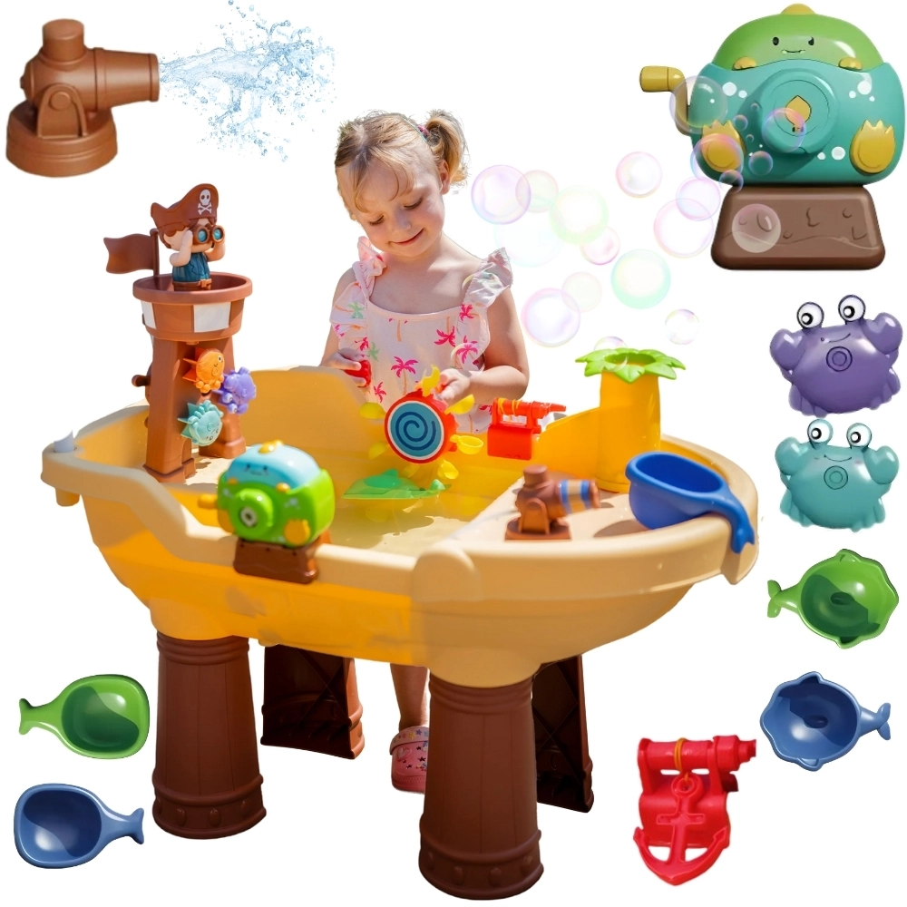 Интегрираният производител на сапунени балони и водното оръдие превръщат играта в пиратско шоу. Децата могат да пръскат, да духат и да наблюдават балоните и течащата вода.