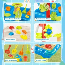 Woopie настолен воден комплект 3-в-1 е страхотна играчка за деца, които обичат да откриват света чрез креативна игра. Тази водна маса с много аксесоари позволява на децата да развиват въображение, моторика и сръчност не само на плажа, но и в градината и у дома!