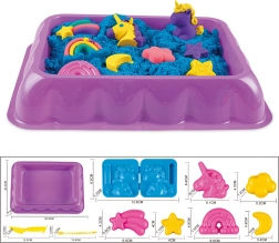 - кинетичен пясък, пластмасово столче/поднос, комплект формички (еднорози, дъги, звезди, облачета и др.), инструменти за моделиране