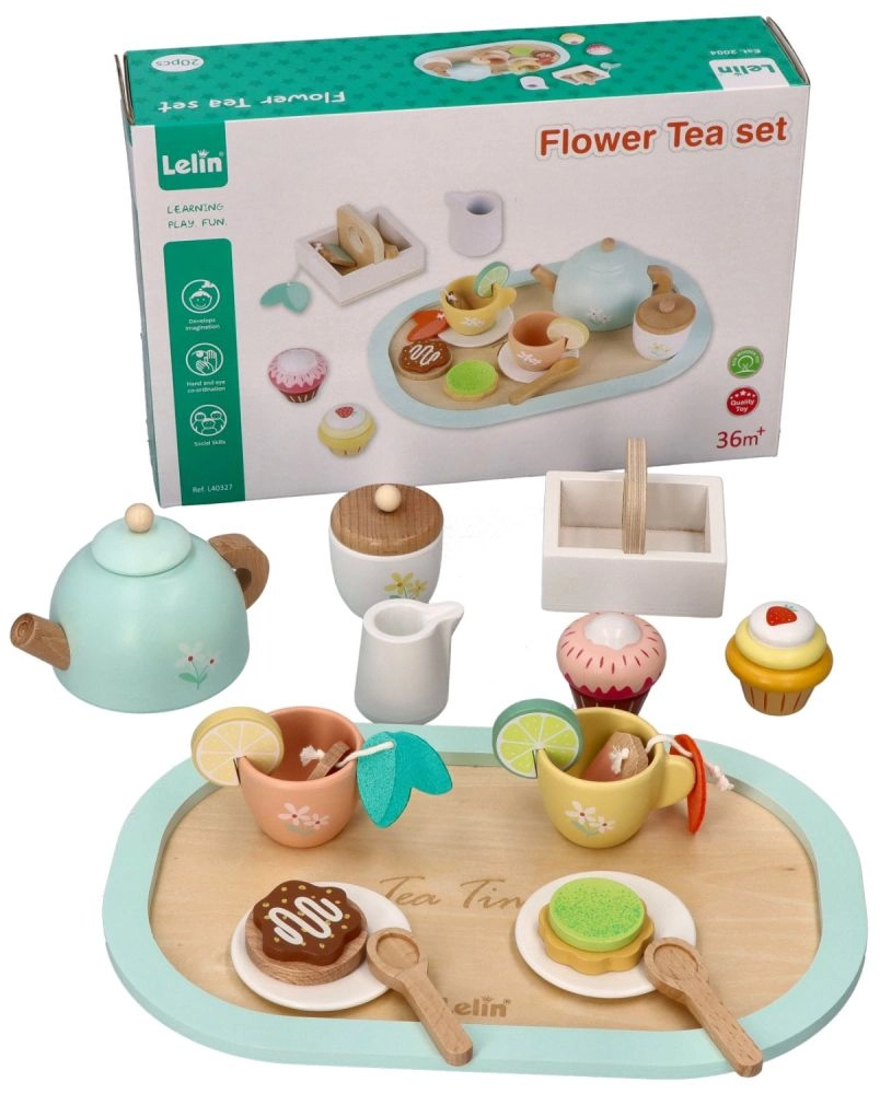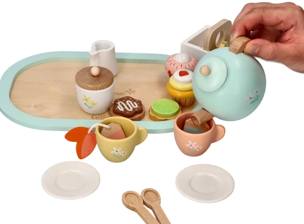 Пастелен чаен комплект Lelin е идеалната играчка за развитие на социални умения, креативност и имитация на ежедневните ритуали на възрастните, в детски приятелски вариант.