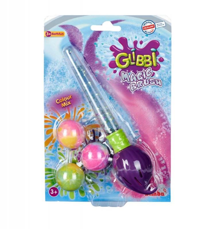Открийте забавлението във водата с нашата Glibbi вълшебна водна четка, която позволява рисуване във ваната благодарение на трите включени ефервесцентни цветни бомбички.