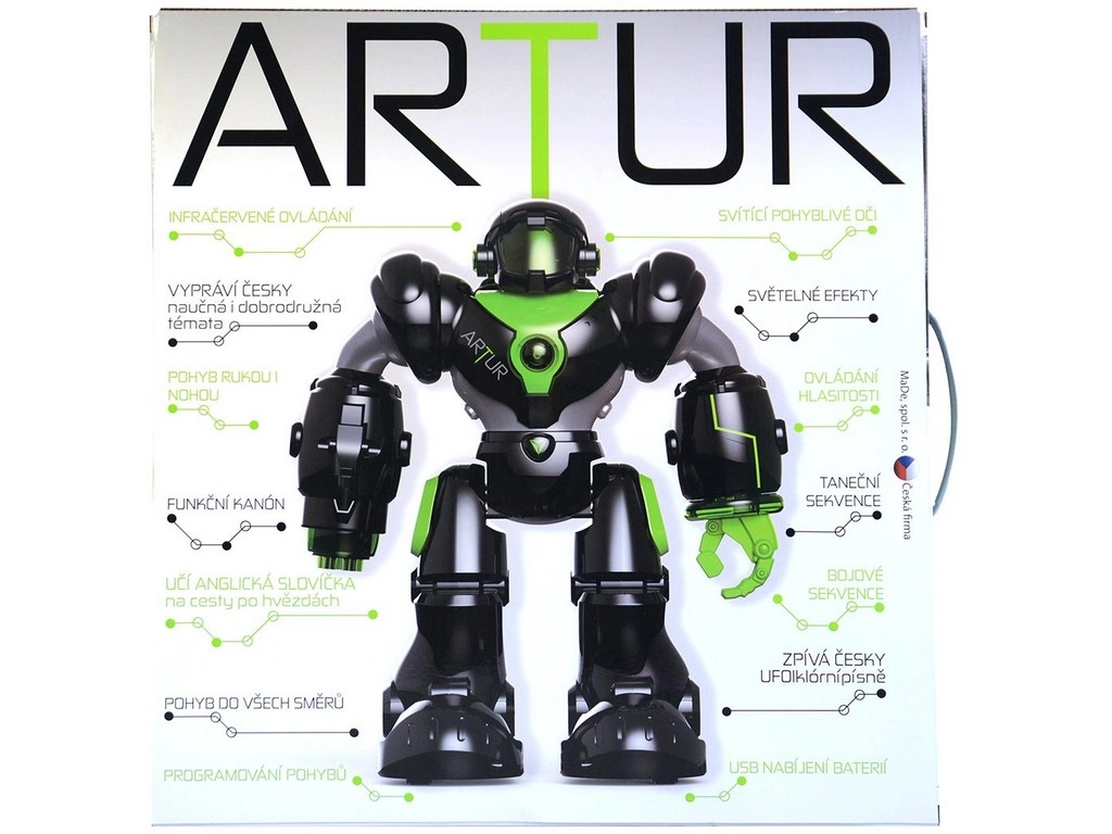 Интерактивният робот Артур е част от космическия екипаж на Зигиботите и предлага образователни и приключенски теми на чешки. Артур се движи, учи английски думи и разполага с работещ оръдие за пластмасови снаряди за безкрайно забавление.