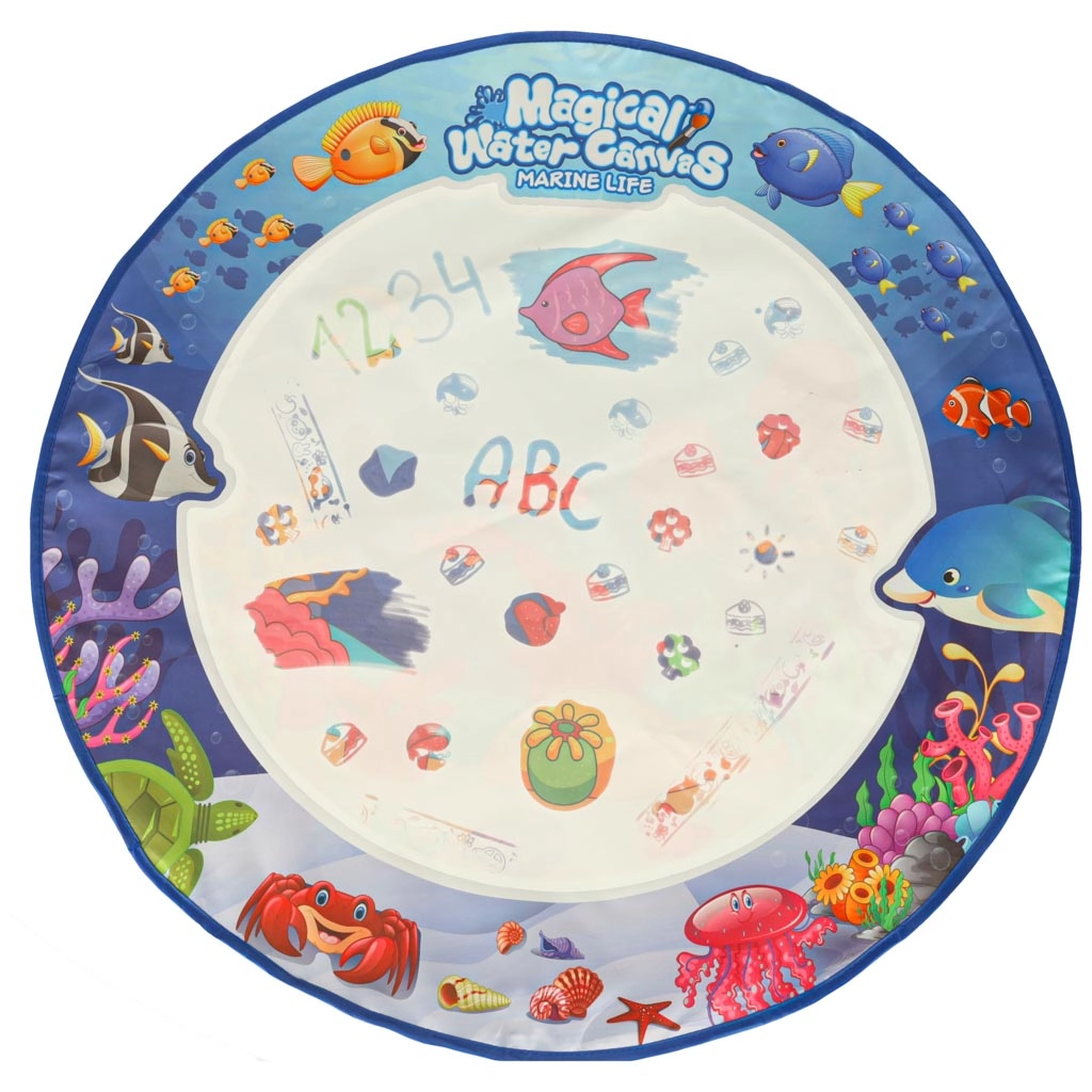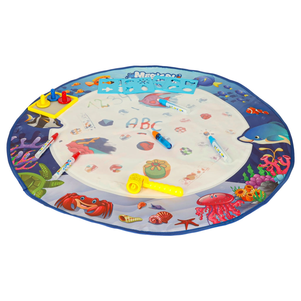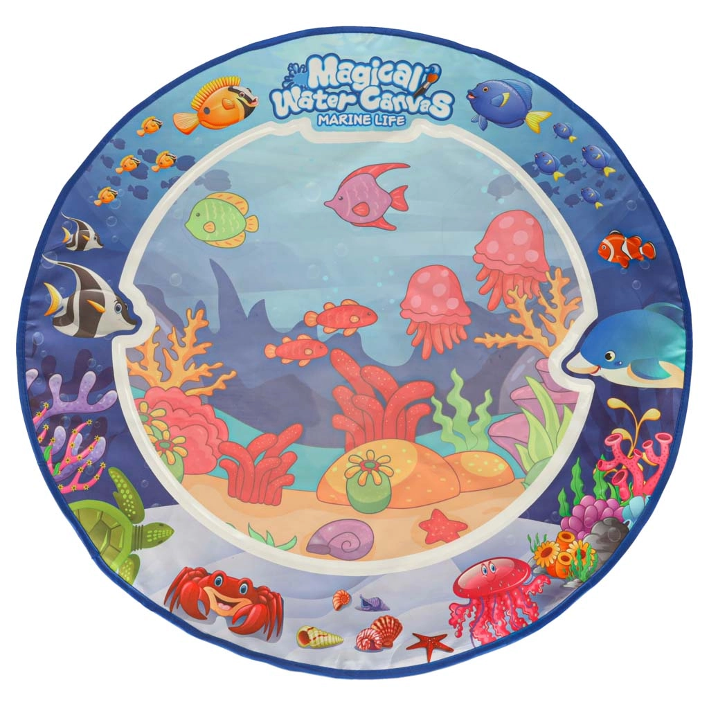 Водната подложка за рисуване „Воден свят“ предлага забавление и обучение за всички малки артисти. Децата могат да се потопят в рисуване без истински бои и хартия, което прави играта безопасна и чиста.