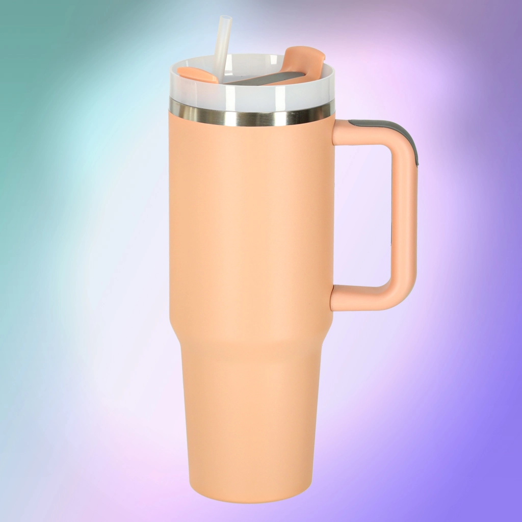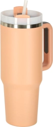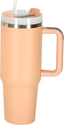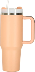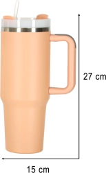 Издръжлив дизайн от комбинация от неръждаема стомана и пластмаса осигурява дълъг живот и устойчивост на повреди. Дръжката гарантира безопасно пренасяне, а в комплекта има и сламка за удобно пиене без нужда от сваляне на капака. Идеален подарък за запалени пътешественици и практични потребители.