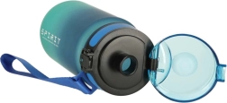 Спортна бутилка с накрайник с обем 600 мл в атрактивен синьо-зелен цвят е идеалният спътник за всеки спортист. Бутилката е оборудвана с удобна каишка за носене и умен механизъм за отваряне.