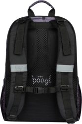 Материалът на раницата е водоустойчив и допълнен с отражателни елементи за безопасност. Циповете на престижната марка YKK гарантират надеждност и издръжливост. Раницата е допълнена със стилен висулка-аксесоар и възможност за съчетаване с други училищни принадлежности. Отговаря на условията за тестване и сертификация по ITC и QIMA.