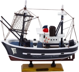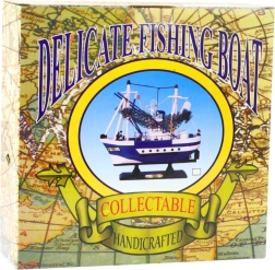 Моделът Flying Lady е декоративна реплика на класическа рибарска лодка, вдъхновена от съдове, използвани при крайбрежен и пристанищен риболов. Има характерна надстройка, висока капитанска кула, единичен мачтов стълб с такелаж и технически детайли, имитиращи радари и комини, което му придава уникален, реалистичен вид. Изработен е от дърво и е ръчно довършен, което добавя колекционерска стойност и изразен морски характер.