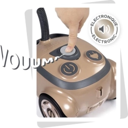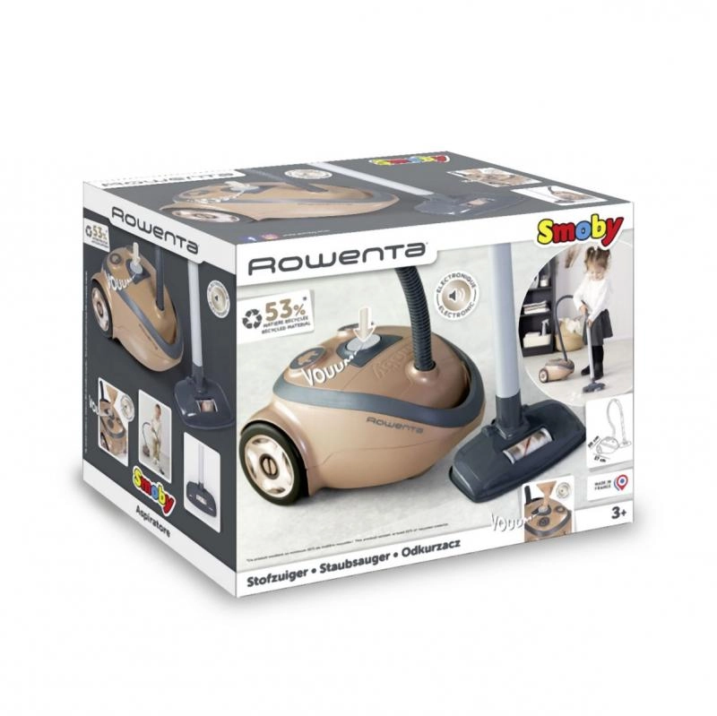 Детската прахосмукачка Rowenta е компактна и лека, идеална за лесно боравене дори от по-малки деца. Предлага електронен звук на засмукване и е изработена от 53% рециклиран материал.