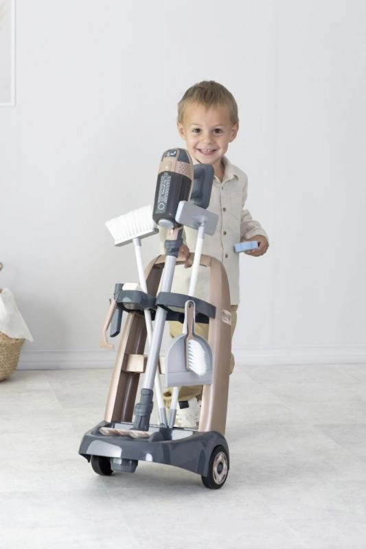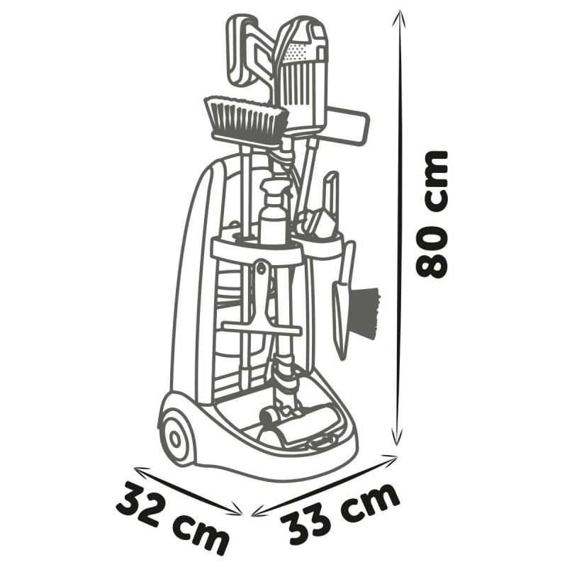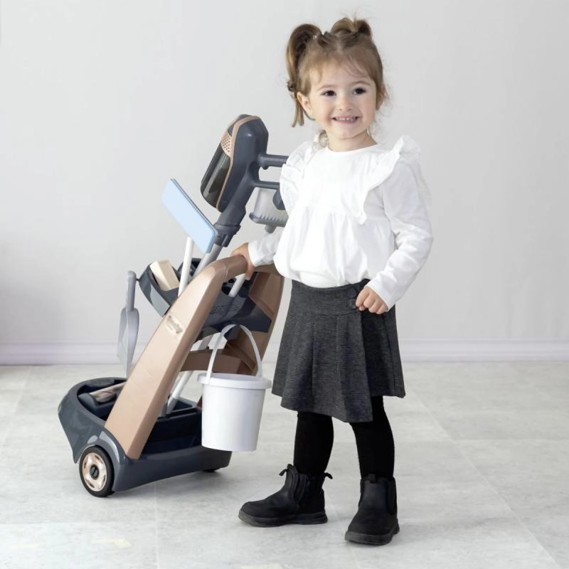 Тази почистваща количка е идеална за деца, които искат да помагат у дома. Сред аксесоарите са: