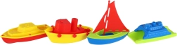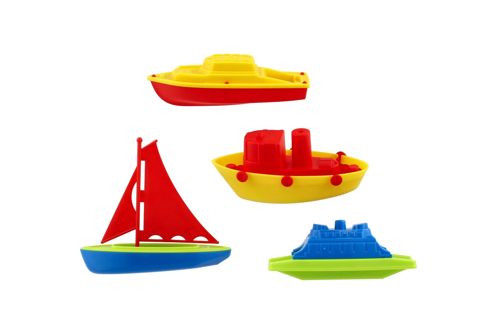 Този практичен комплект съдържа четири пластмасови лодки в различни форми и цветове, включително платноход и моторни лодки. Лодките са леки, издръжливи и добре пасват на малки детски ръчички. Благодарение на плаващата конструкция са перфектни за ваната и детското басейнче.