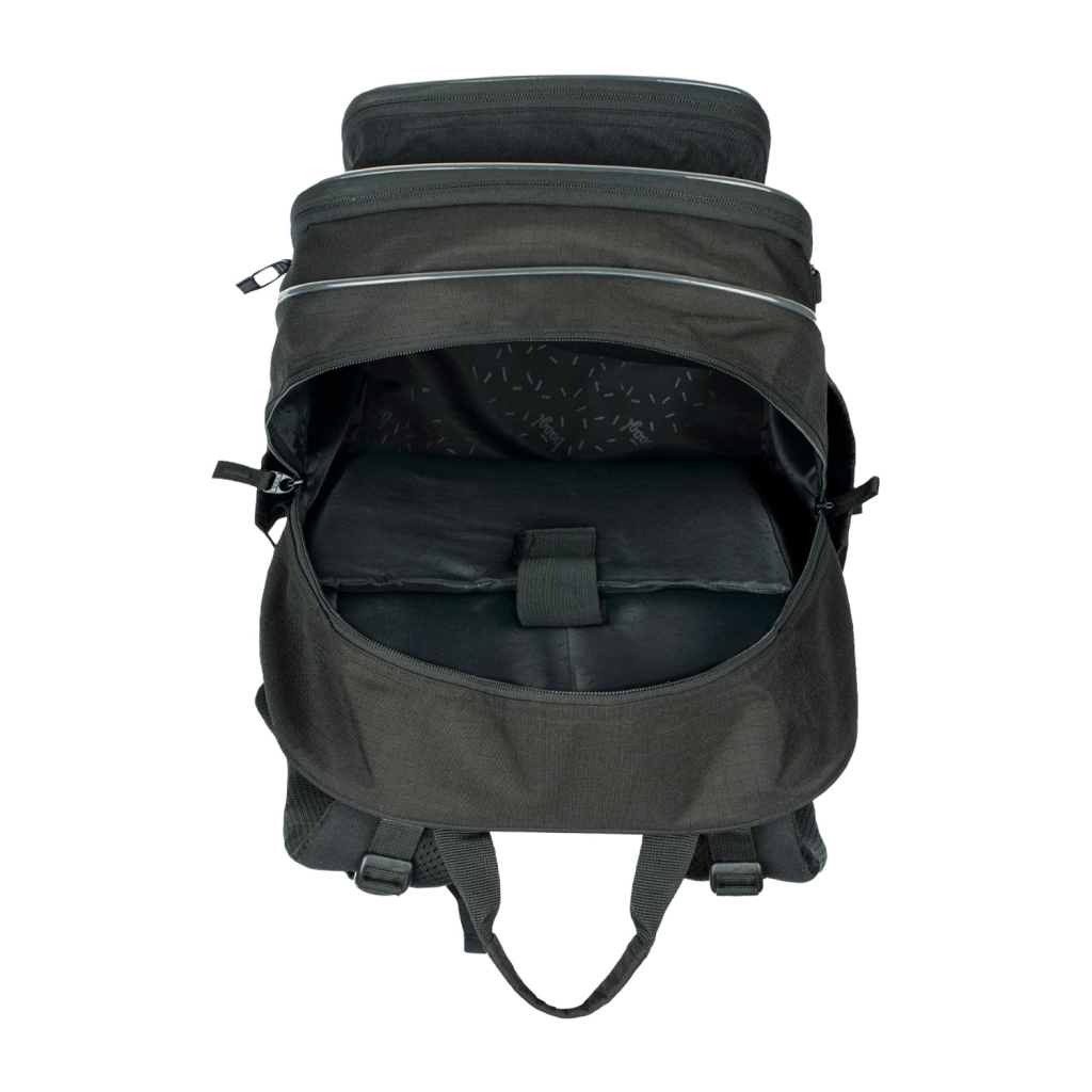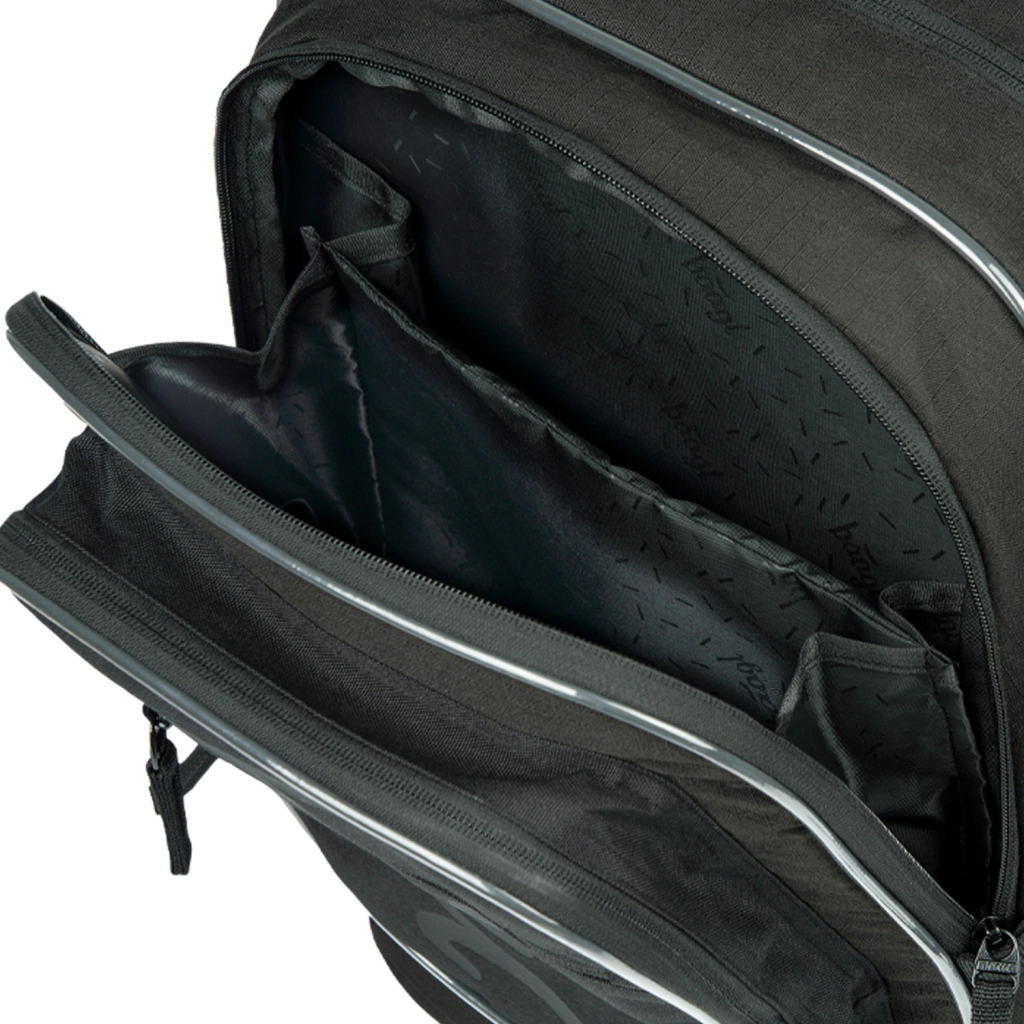 Раницата разполага с три отделни затварящи се отделения със специализиран вътрешен органайзер и джоб за 15-инчов лаптоп или таблет. Предното отделение предлага практичен органайзер и подвижна карабинка за ключове.
