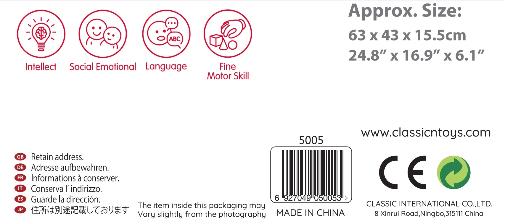 Classic World е утвърдена марка, известна с качеството и безопасността на своите играчки. Висококачественото производство отговаря на международните стандарти и дава увереност на родителите, че децата им получават само най-доброто.