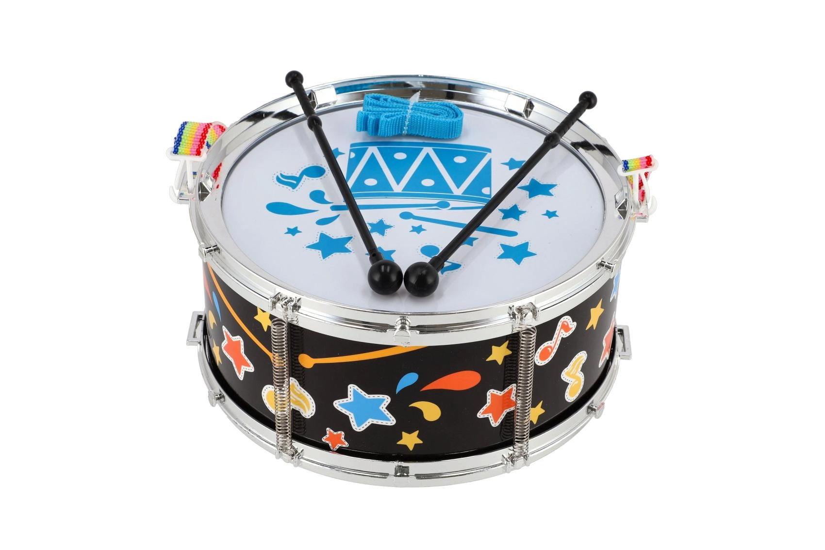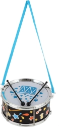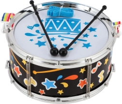 Този лек и издръжлив пластмасов барабан е чудесен избор за първи музикален инструмент. Благодарение на регулируемата презрамка децата лесно го носят през рамо и могат да свирят у дома, в двора или по време на излети. В комплекта са включени палки, така че забавлението може да започне веднага след разопаковането.