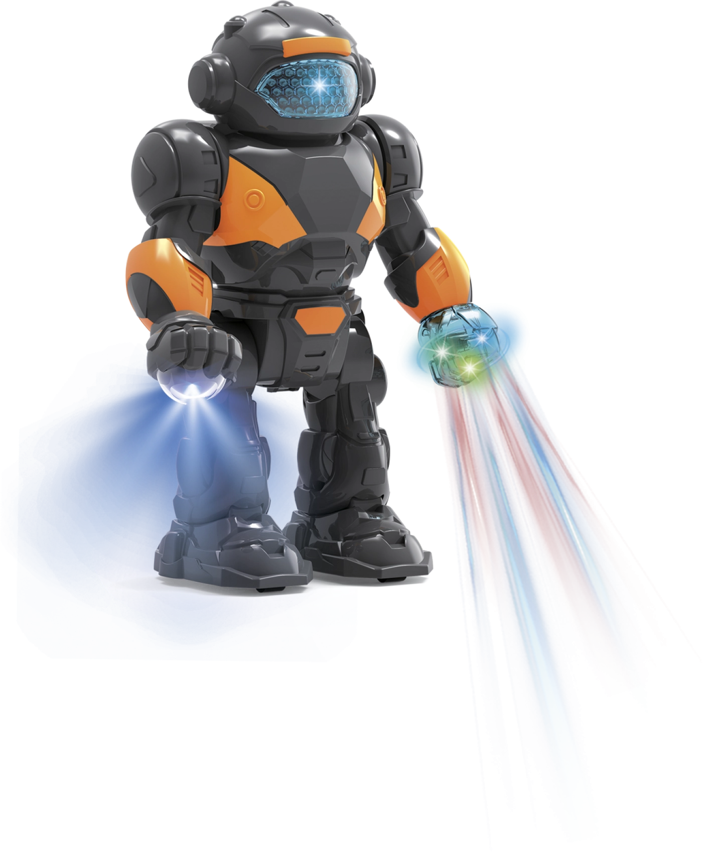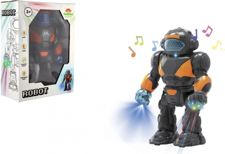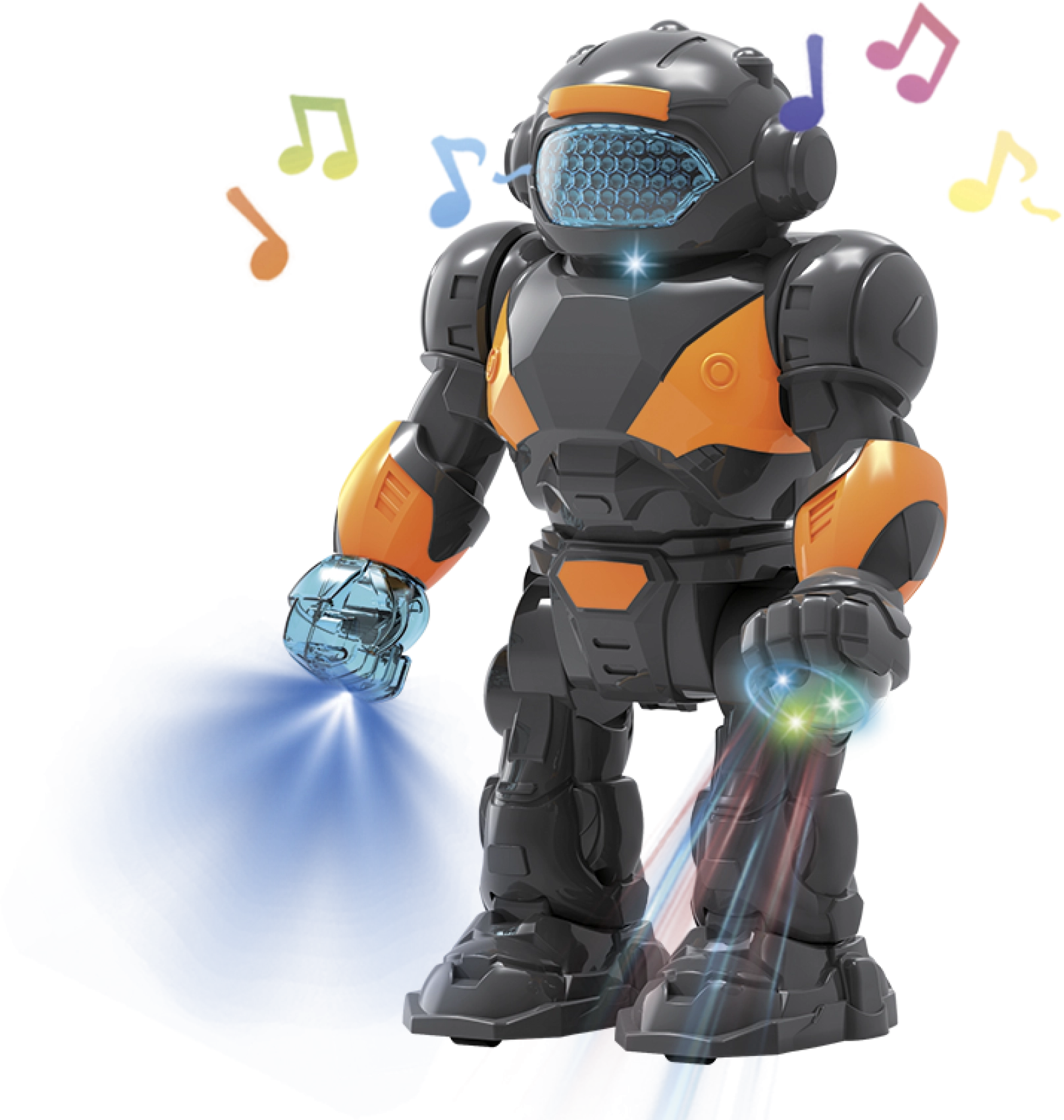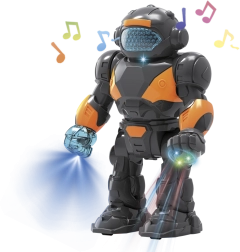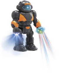 Забавлението с този пластмасов робот с височина 22 см е безкрайно. С лесно включване го привеждате в действие и той се превръща в неразделна част от всяка игра. Подходящ за деца от 3 години, този робот може да се бори срещу нашественици или да охранява космическа база. Това е чудесна играчка, която развива въображението на малките деца и техните моторни умения. При активиране роботът предлага: