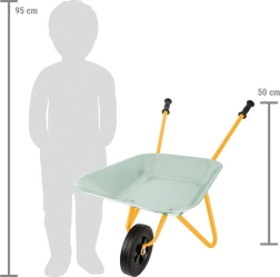 Перфектна за работа в градината! Здрава метална кофа, гумени гуми и противоплъзгащи дръжки позволяват на децата да помагат на родителите в градината. Подходяща за градина и пясъчник.