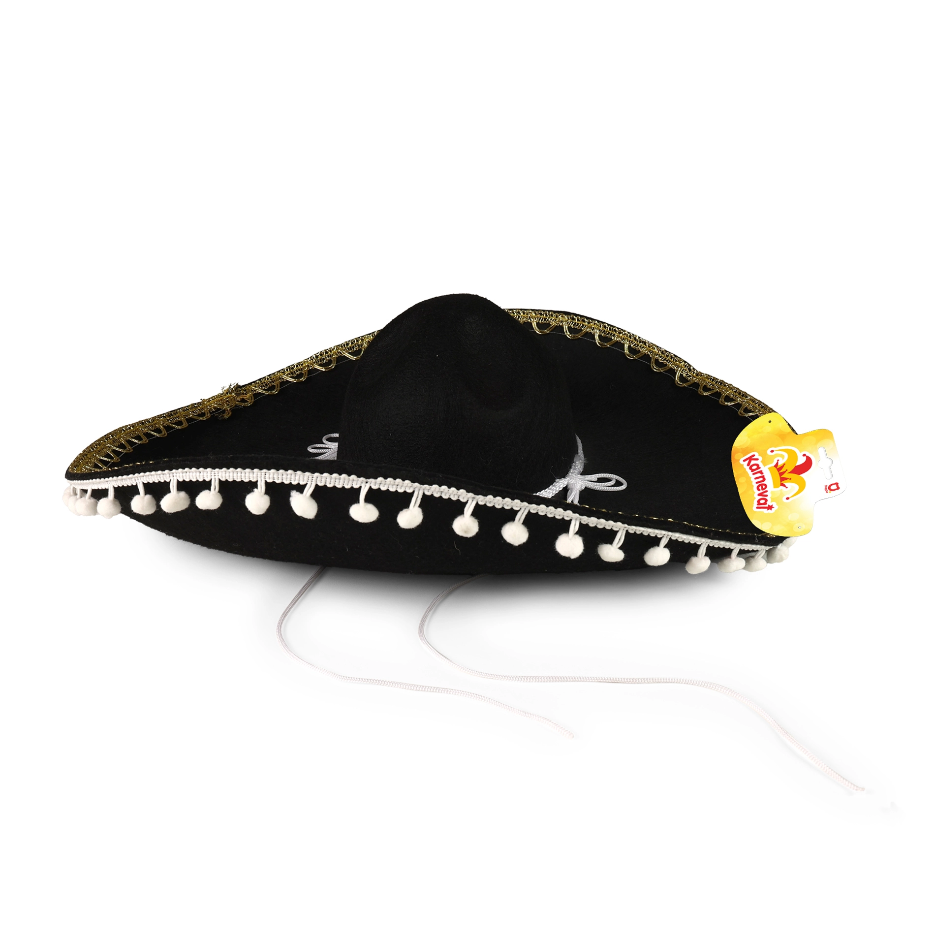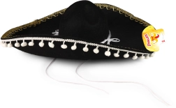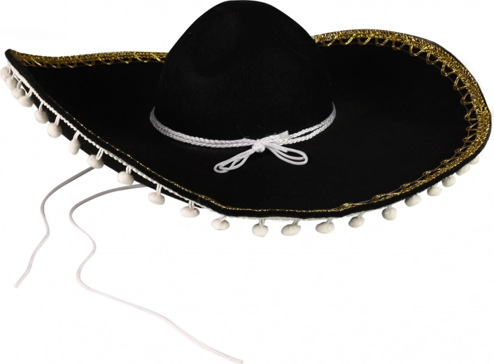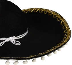 Това черно сомбреро е идеално за всеки, който иска да впечатли на карнавал или тематично парти. С белите помпони и връвчицата осигурява не само стил, но и удобство при носене. Перфектно допълнение към: