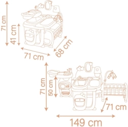 Този уникален игрови център предлага три зони – кухня, баня и спалня – които осигуряват на вашето дете всичко необходимо за реалистична игра.