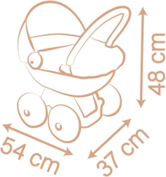 Размерите на количката са 54 x 37 x 48 см (ДxШxВ), което я прави идеален избор за всички видове кукли, подходящи за този размер. Куклата не е включена в комплекта, което дава възможност за избор според предпочитанията на детето.