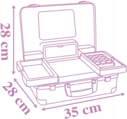 Този куфар е лесно преносим благодарение на дръжката, а загубата на аксесоари не е повод за притеснение благодарение на възможността за заключване. Вътре ще откриете огледало и тайно отделение. Рафтовете могат да се сгъват, което създава място за допълнителни предмети. Идеален за пътуване и за подреждане на козметични аксесоари.