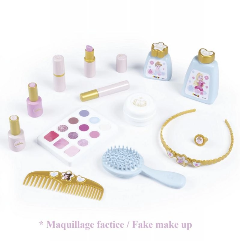 Козметичният куфар Disney Принцеси предлага всичко необходимо за чудесно мобилно уелнес изживяване, включително прическа, маникюр и грим. Съдържа общо 13 аксесоара, идеални за игра.