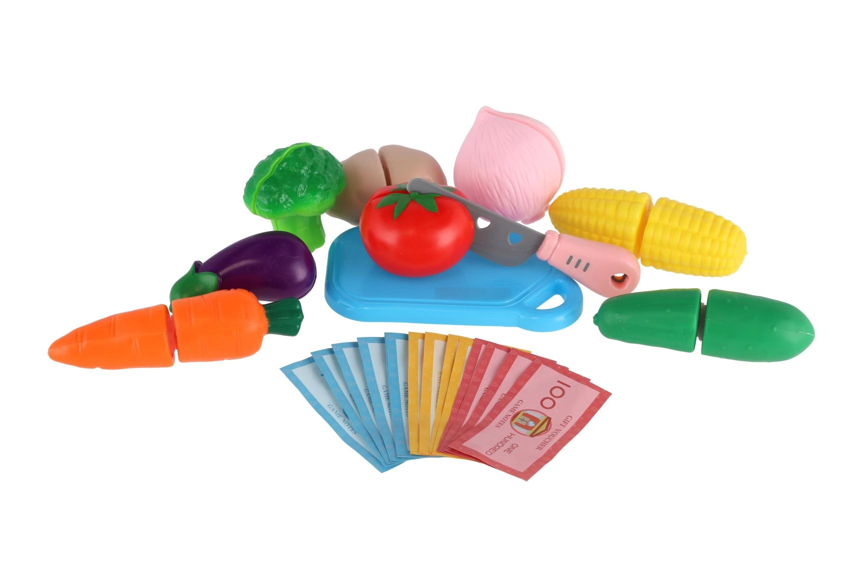Нашият комплект нарязващи се зеленчуци предлага реалистична игра за деца, които обичат да подражават на възрастните. Всеки зеленчук е свързан с велкро, което позволява безопасно „рязане“ с пластмасов нож. Комплектът съдържа различни видове зеленчуци и дъска за рязане, благодарение на което децата могат да развиват своята креативност и да си играят на професионални готвачи.