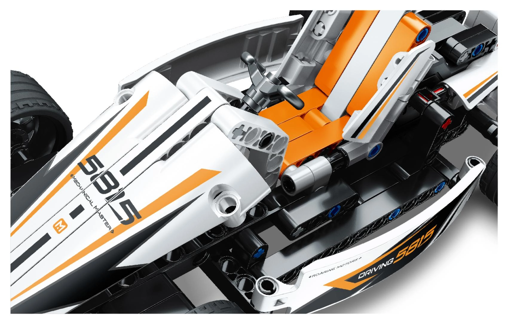 Създайте реалистичен модел на състезателен болид с прецизни детайли, стабилна конструкция и наистина функционално обратно навиване. Ясните инструкции водят децата през цялото строене стъпка по стъпка, така че готовият модел да носи удоволствие както при сглобяване, така и при каране.