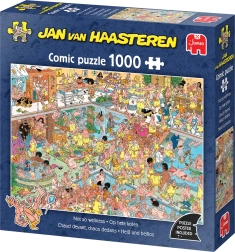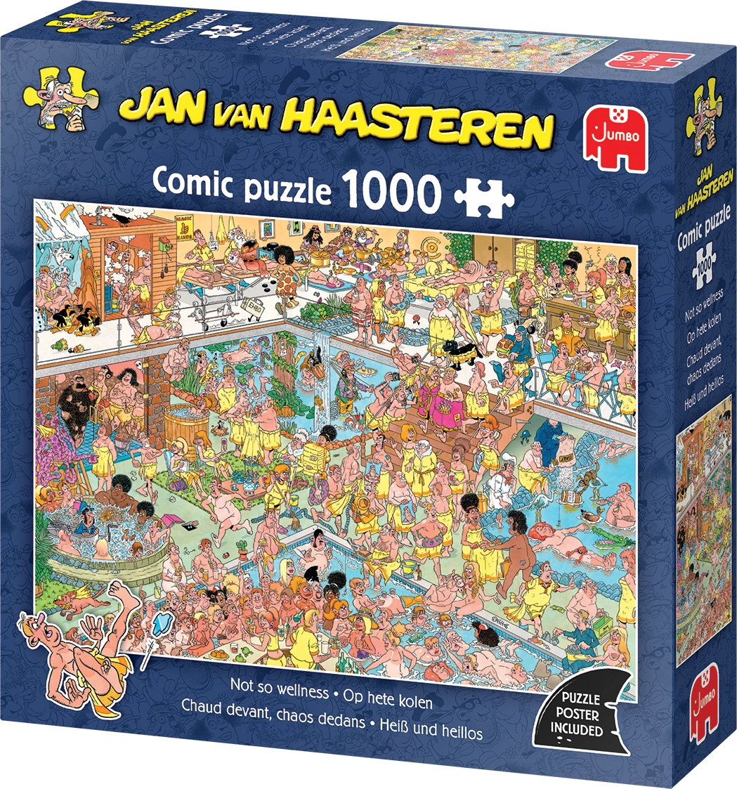 Изживейте радостта от подреждането на уникален пъзел от renomирания автор Ян ван Хаастерен, който е пълен с хумор и цветове. Неговите творби са известни със своя характерен стил, където ще откриете неочаквани детайли като перка на акула и забавни персонажи.