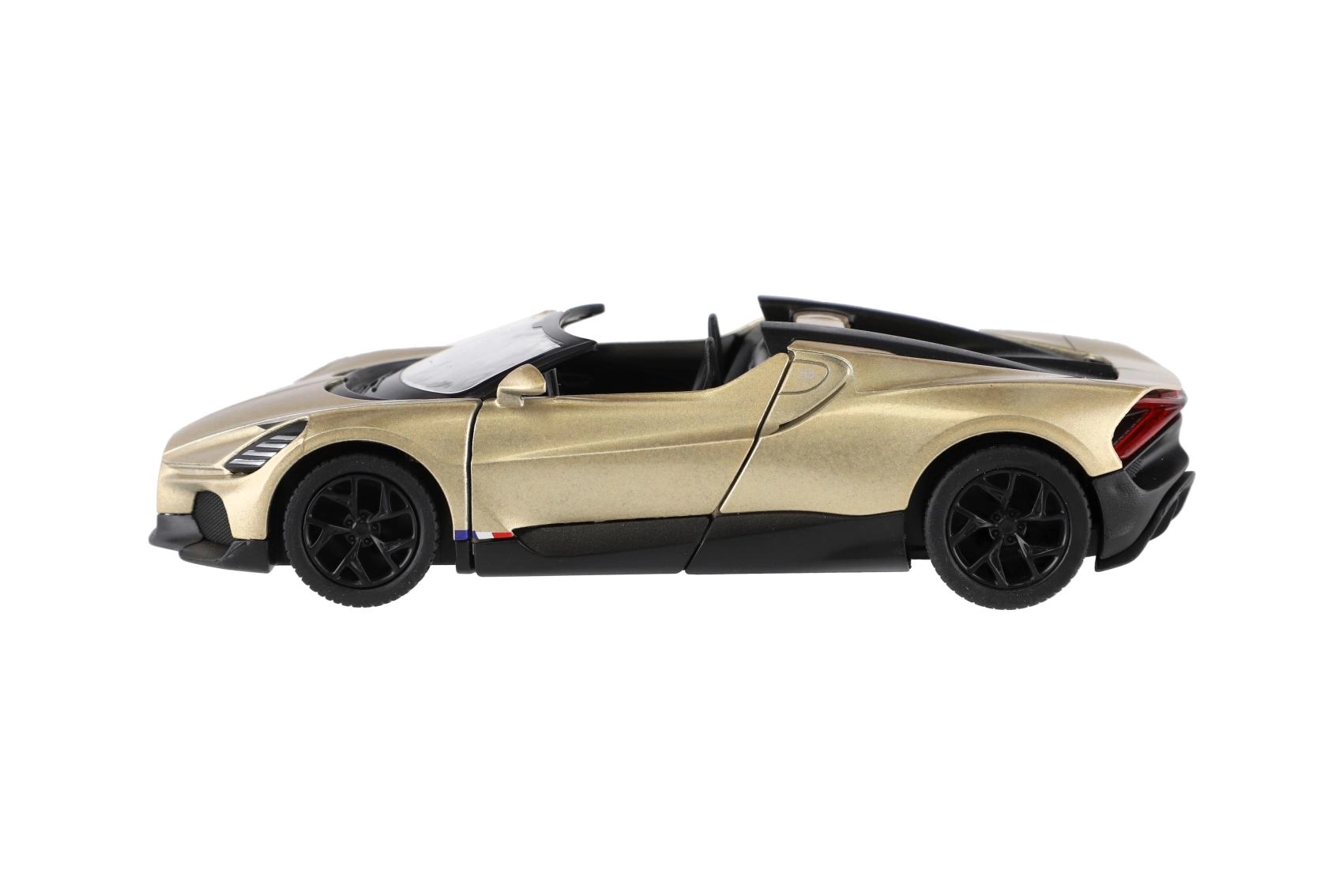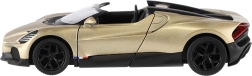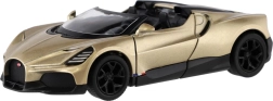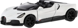 Този детайлно изработен модел BUGATTI MISTRAL носи лукс и скорост директно във вашата витрина и детска стая. Каросерията от метал с пластмасови елементи осигурява издръжливост и автентичен вид, а функцията за задвижване при оттегляне предлага забавно и динамично движение.