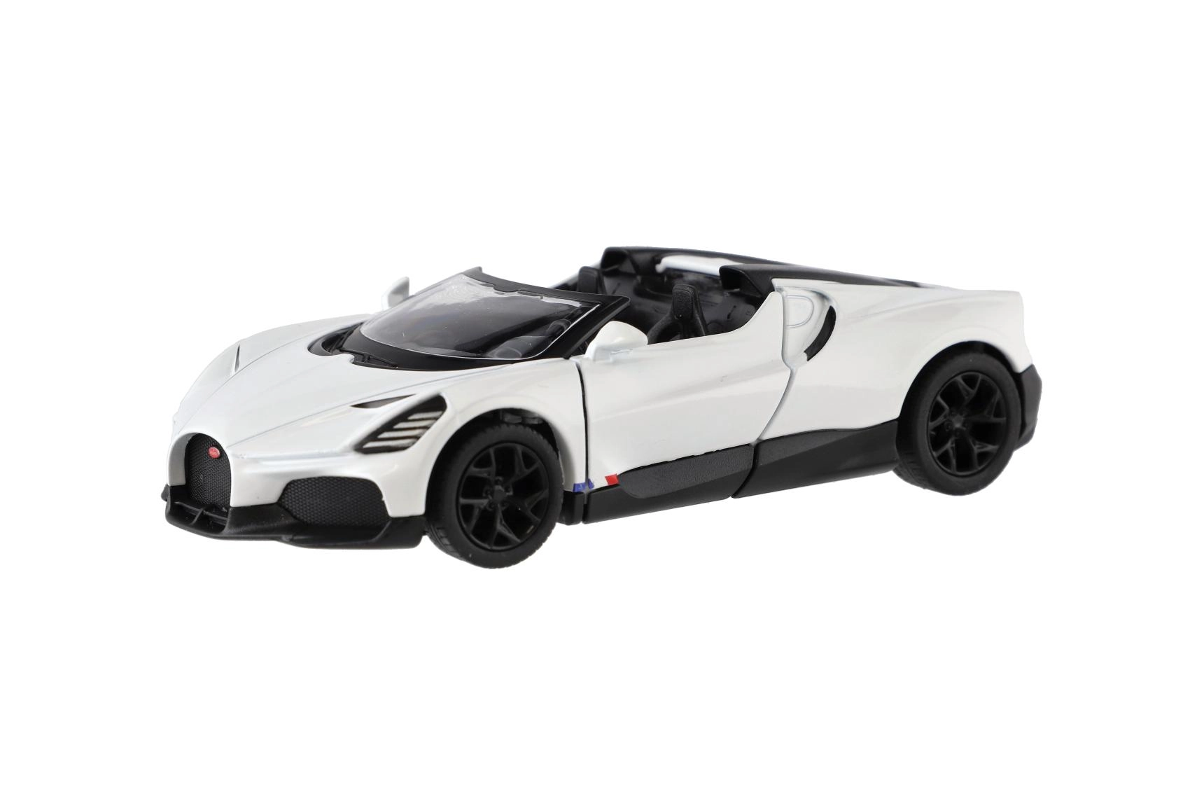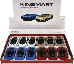 Открийте емблематичен суперавтомобил в джобен формат: метален модел BUGATTI MISTRAL от Kinsmart с прецизна изработка, pull-back задвижване за пъргаво движение и отварящи се врати. Реалистични детайли, качествена комбинация от метал и пластмаса и компактна дължина 13 cm ще зарадват както децата, така и колекционерите.
