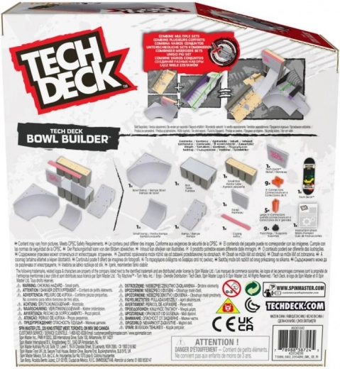 Комплектът Tech Deck Bowl Builder предлага реалистично изживяване във фингърбординга в компактна форма. Благодарение на системата X-Connect можете свободно да комбинирате и разширявате частите – рампи, bowl сегменти и парапети. Включен е и ексклузивен фингърборд, с който още от първото отваряне ще изпробвате любимите си трикове.