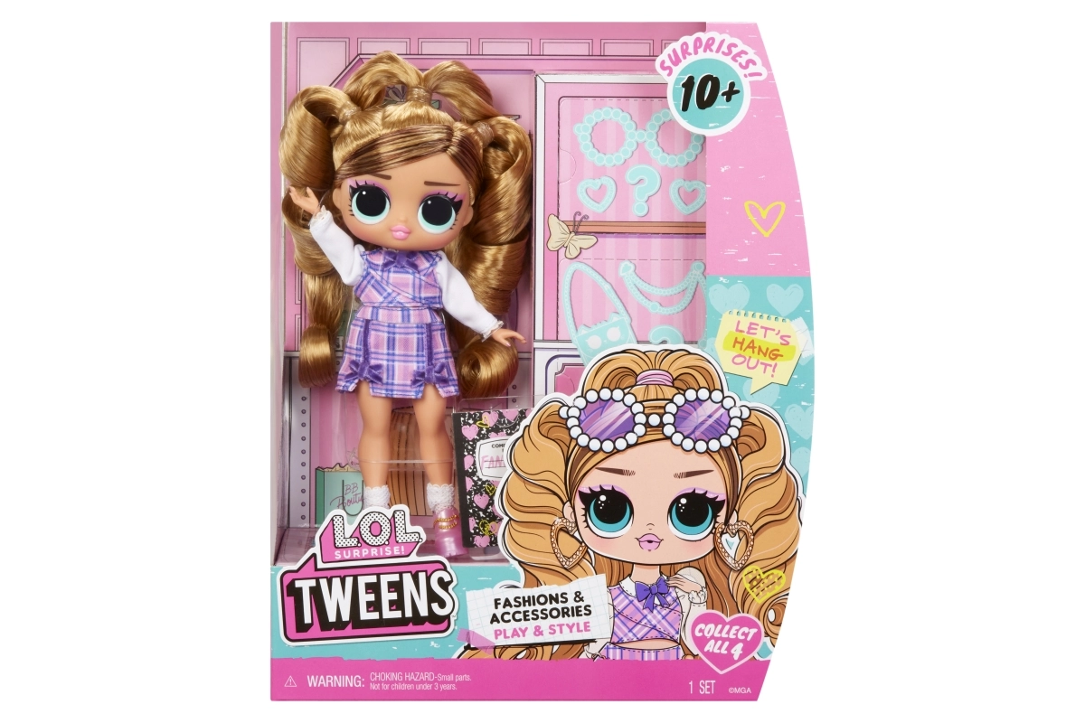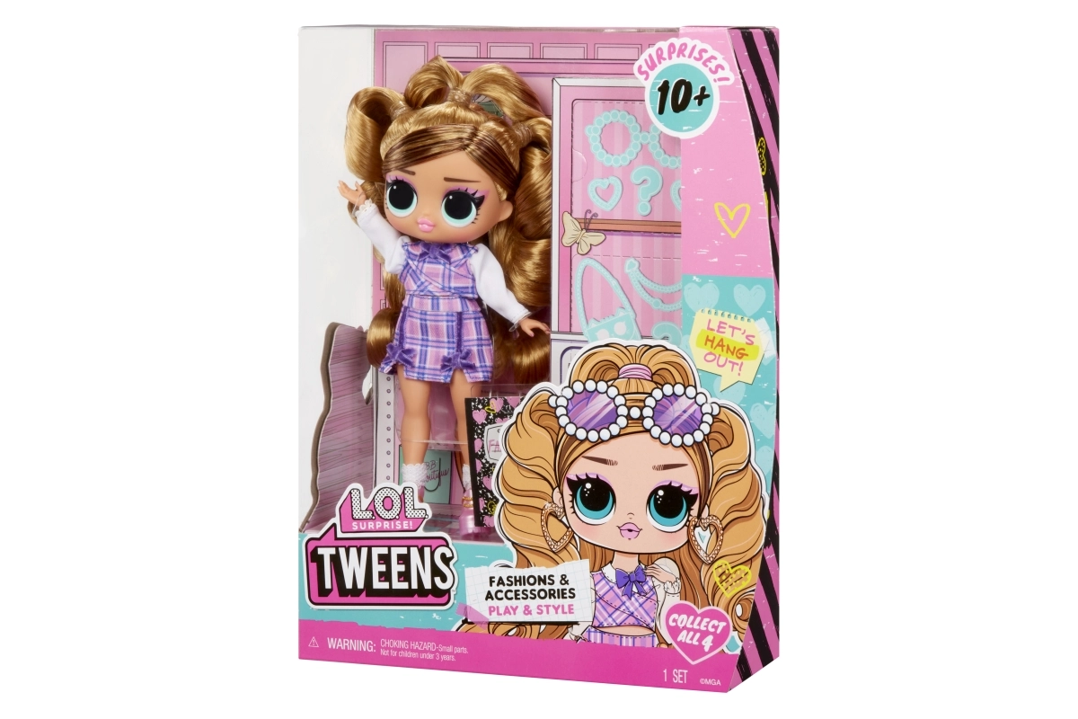 В комплекта ще намериш всичко за незабавна игра: тоалет, обувки, гребен за коса, стилни аксесоари, дневник с нейните тайни и стойка за кукла. Събери всички приятелки от серията Tweens и създай модно ревю на мечтите.