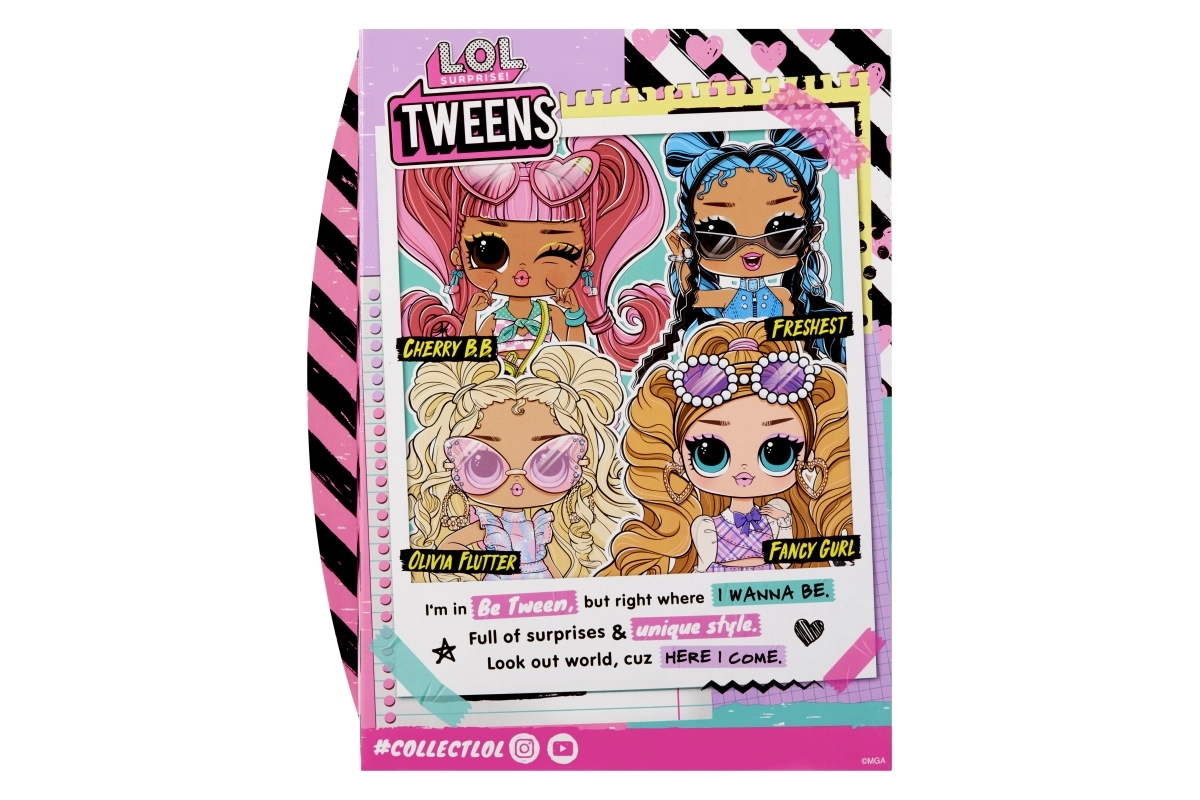 Стилната кукла L.O.L. Surprise! Tweens Fancy Gurl идва с нов външен вид, гъста коса, артикулирано тяло и 10 изненади. Открий моден тоалет, сладки аксесоари, стилни обувки и я изложи на стойка за перфектно позиране. Идеална за колекционери и деца, които обичат креативна игра и преобличане.