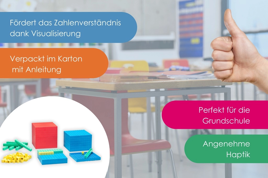Този впечатляващ комплект със 121 части от устойчив RE-пласт помага на деца от 6 години да развиват математическите си умения по забавен и игрови начин. Съдържа цветни елементи за разпознаване на структури и стойности, което е идеално както за начални училища, така и за домашна употреба.