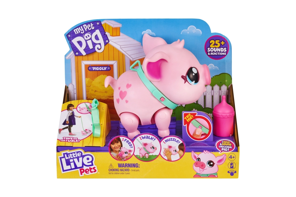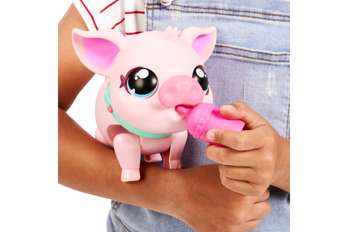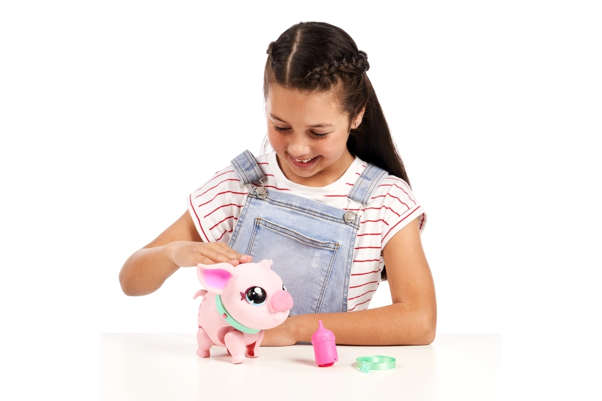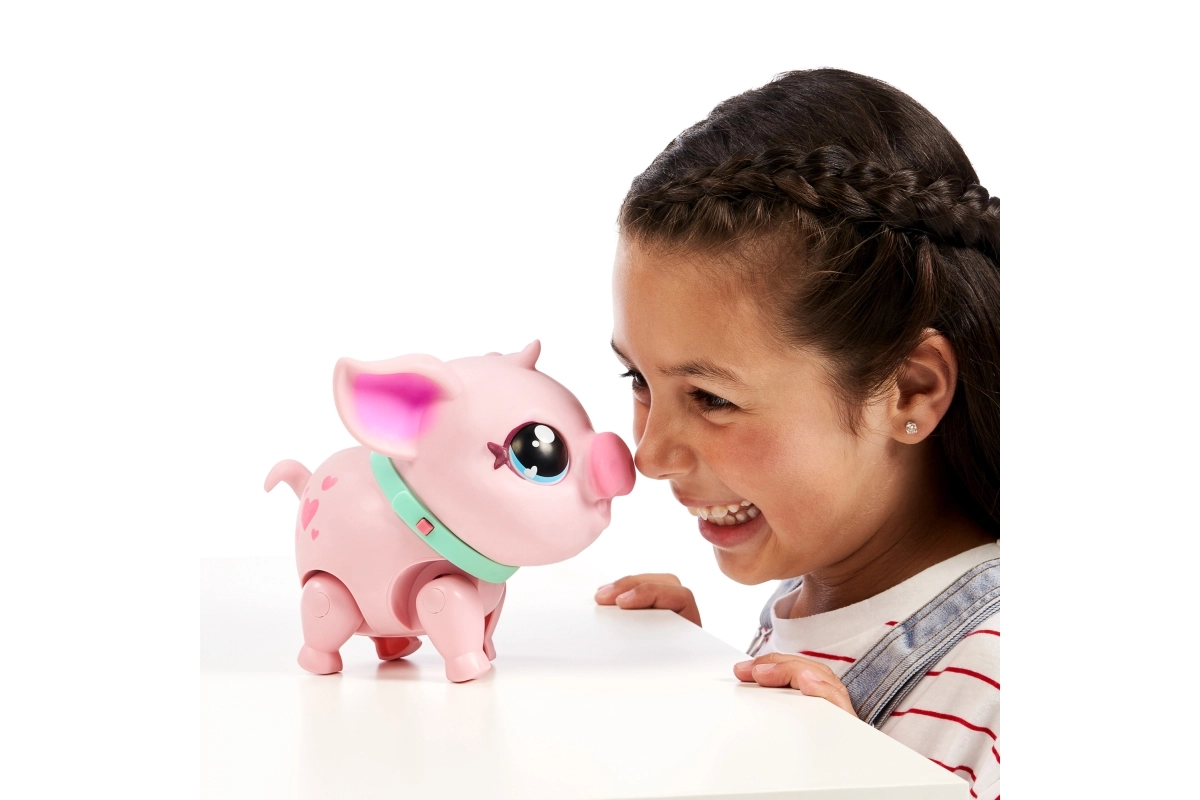 Открий вълшебното любимче, което оживява в детските ръце. Piggly е меко розово прасенце с очарователни очи и нашийник, което реагира на допир, движение и грижа. С каишката лесно ще го изведеш на разходка, а когато огладнее, ще го нахраниш с шишенцето.