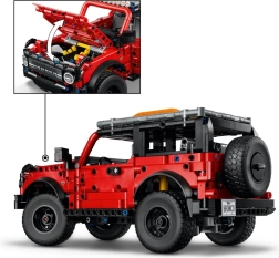 Сглобете емблематичния FORD BRONCO в изданието LEGO Technic и потеглете към офроуд преживявания. Моделът предлага чудесен баланс между детайли и функции: от отварящи се врати и работещо окачване на колелата до автентичен V6 двигател. Управлението се извършва удобно чрез задното резервно колело, така че моделът е не само красив, но и напълно управляем.