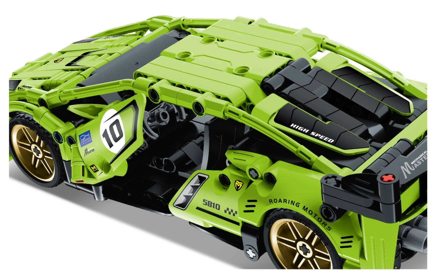Този детайлен конструктор съчетава креативно сглобяване и вълнуващо каране. Благодарение на механизма за обратно навиване автомобилът след сглобяване наистина потегля напред, а реалистичните детайли и аеродинамичният дизайн ще зарадват всеки фен на бързите возила.