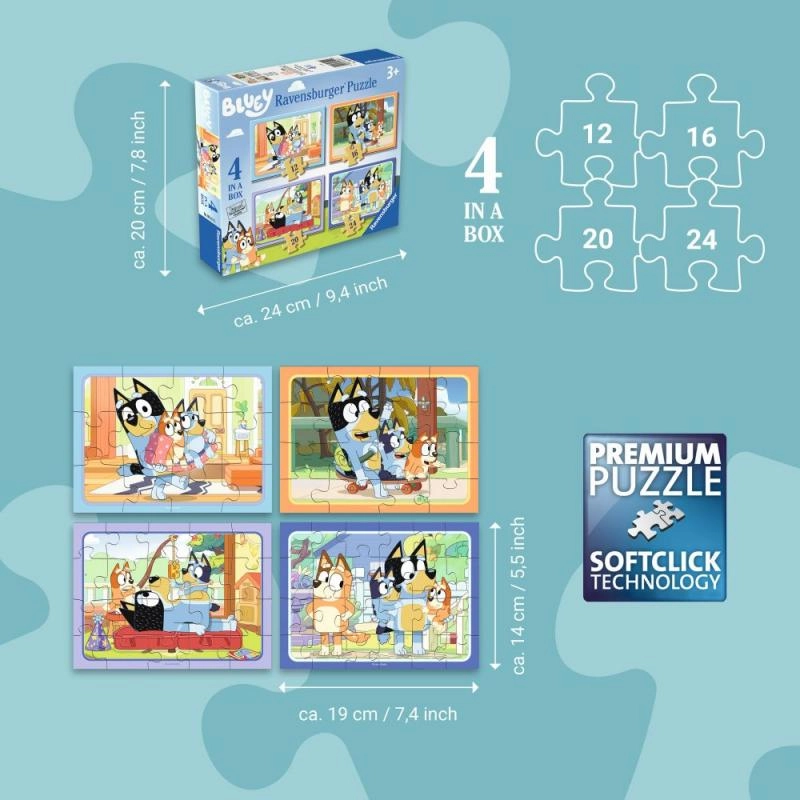 Любителите на пъзели и феновете на сериала Bluey ще останат очаровани от този великолепен пъзел на Ravensburger. Перфектен избор за деца и възрастни, които искат да се забавляват с семейство или приятели. Този пъзел предлага: