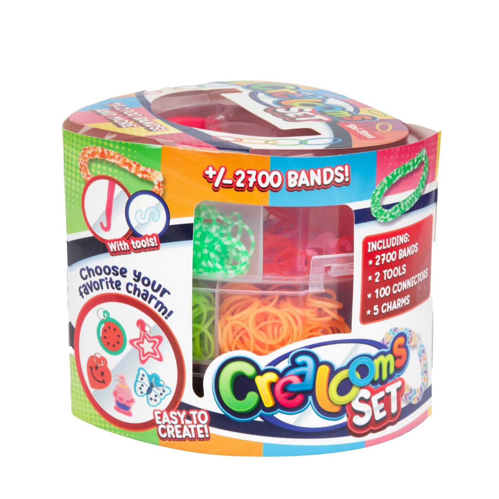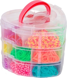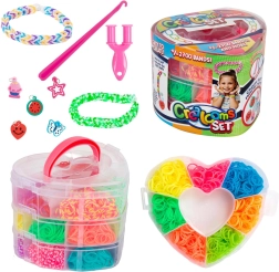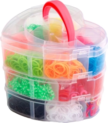 Креативен комплект за изработка на собствени гривни и аксесоари е идеален за всеки малък дизайнер, който иска да развива уменията си. Съдържа над 2700 цветни ластичета и инструменти за плетене.