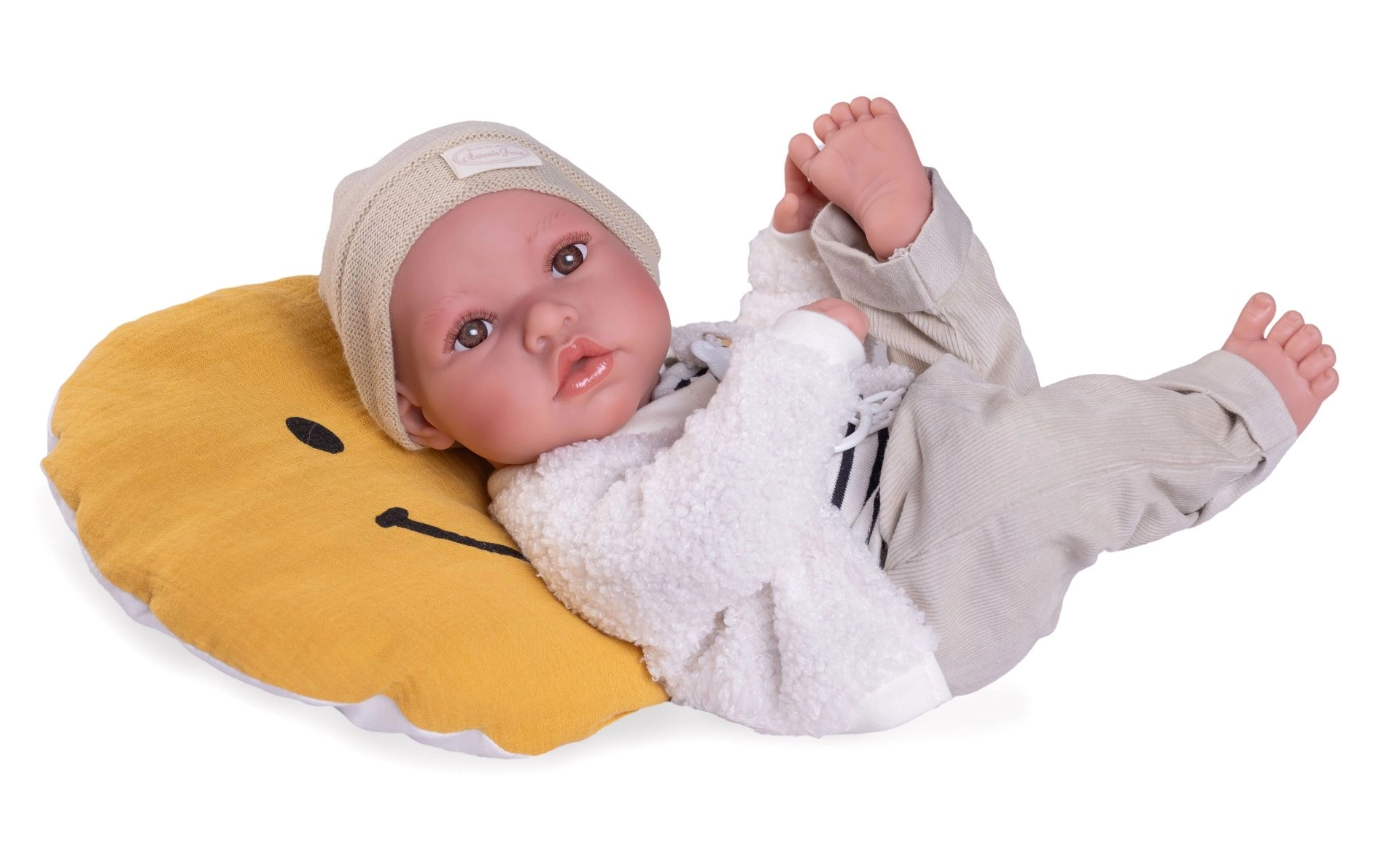 Тази реалистична кукла се доставя в подаръчна кутия, което я прави идеален подарък за деца от 3 години. Фирма Antonio Juan поставя силен акцент върху екологията и затова използва органичен памук.
