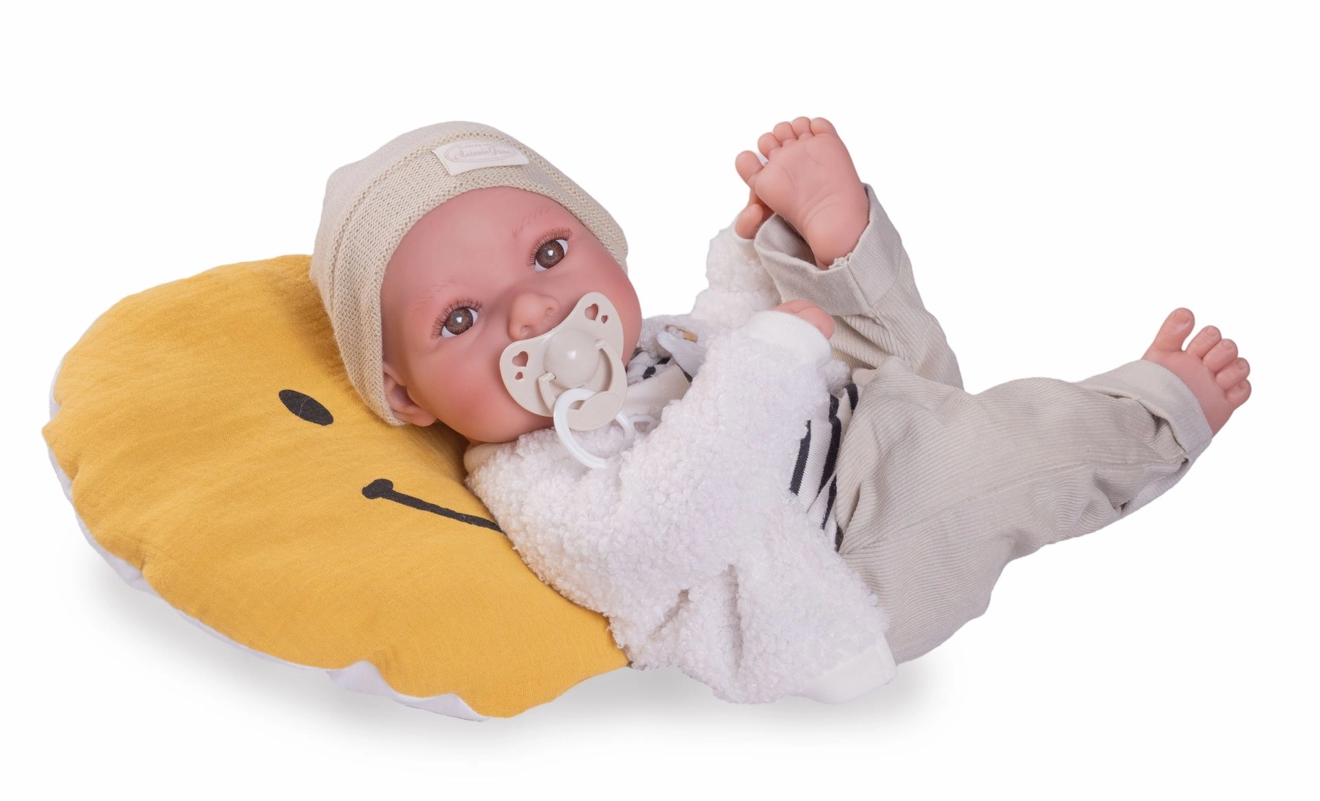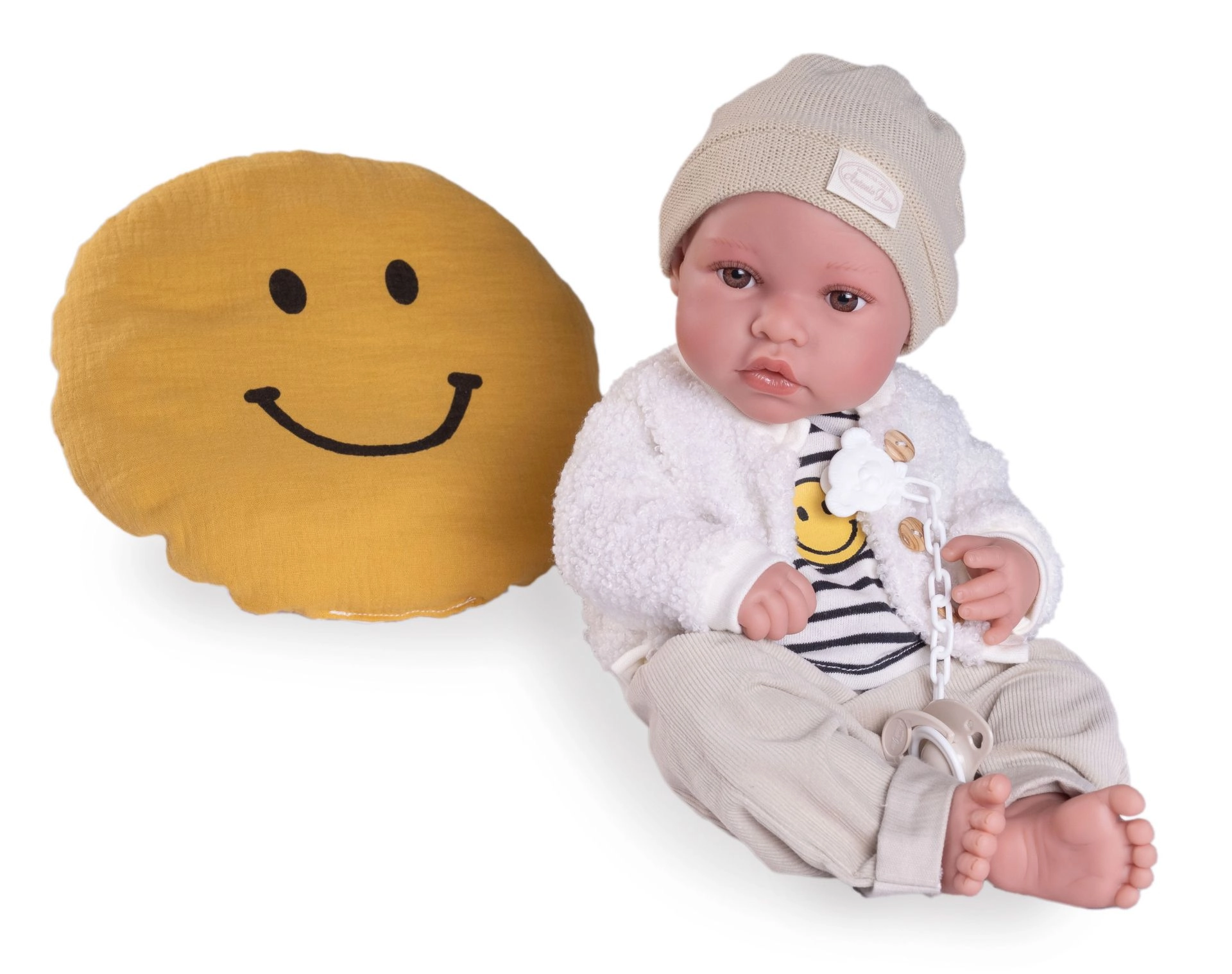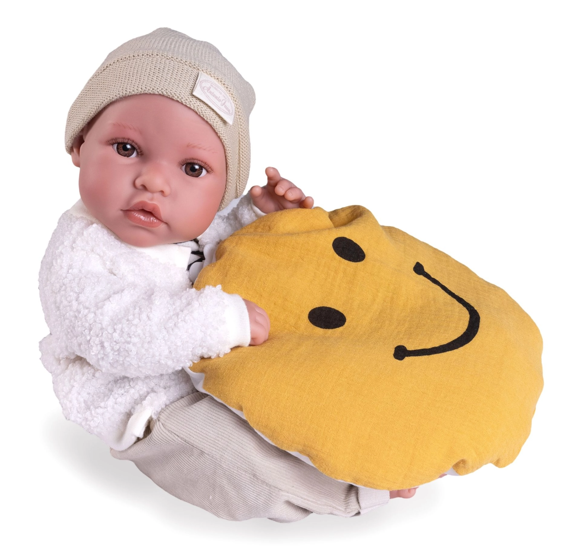 Тази испанска кукла е изработена от специален омекотен винил, който е приятен на допир и придава на играчката реалистичен вид, включително няколко вида гънки и детайли, включително пол. Благодарение на това децата могат да изживеят уникални моменти на грижа за своето собствено „новородено“.