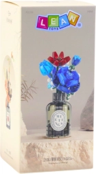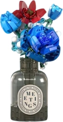 Този конструкторен комплект предлага комбинация от цветна елегантност и забавно творчество. Моделът в прохладни тонове на синьо и червено привлича вниманието с прецизната си изработка, цветните контрасти и естетичната форма. Цветята в композицията включват сини рози, червени лалета и малки детайли, които имитират камбанки или плодчета.