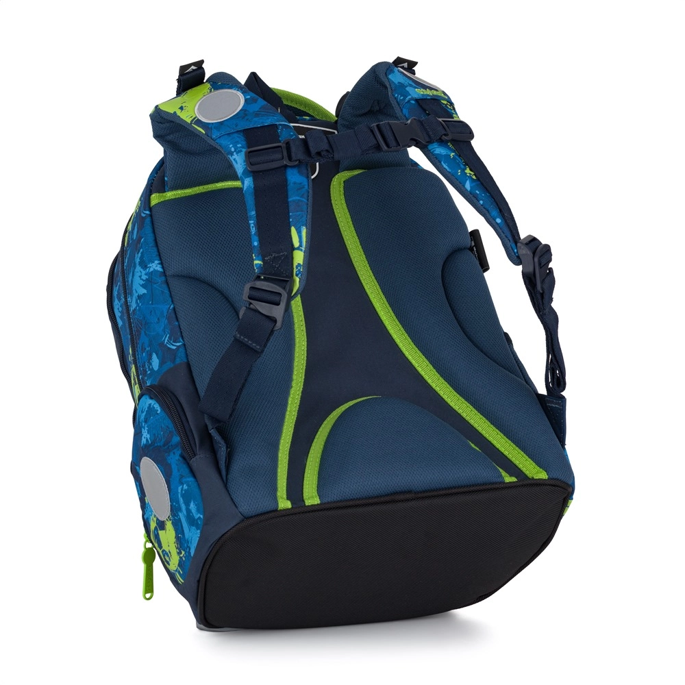 Раницата е прецизно конструирана с издръжливо водоустойчиво дъно, което предпазва съдържанието от влага и замърсяване. Безопасността на децата е подпомогната от светлоотразителни елементи, видими при намалена видимост. Раницата е идеална за ученици от началния курс, които се нуждаят от надежден и стилен аксесоар за училищни дни и свободното време.
