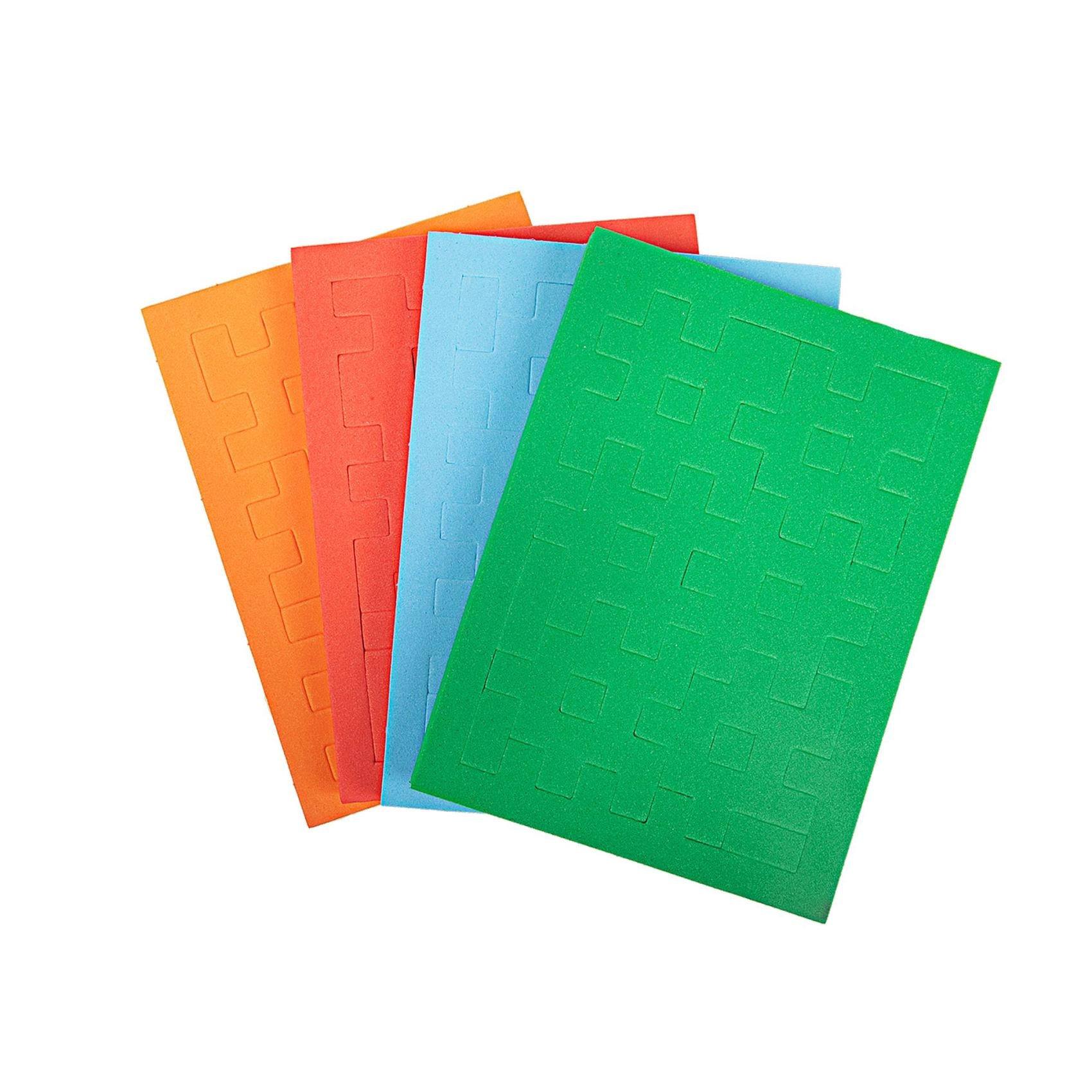 - Съдържа 4 листа с елементи за сглобяване на 4 различни кубчета.