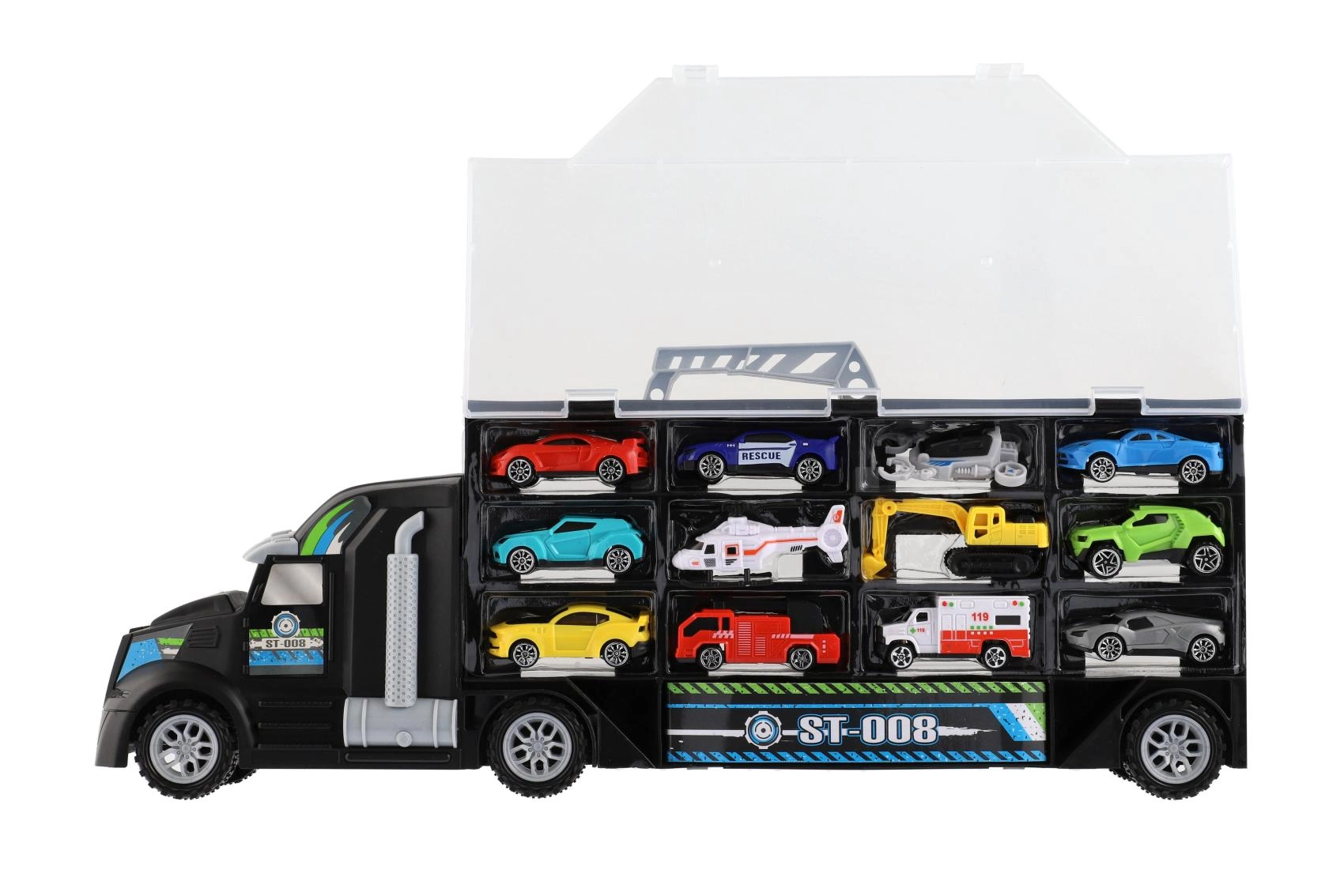 Голям камион транспортьор със свободно движение е идеалният подарък за малките любители на колите. Този многофункционален камион служи като кутия за съхранение и игрови комплект, който позволява лесен транспорт и излагане на превозните средства.