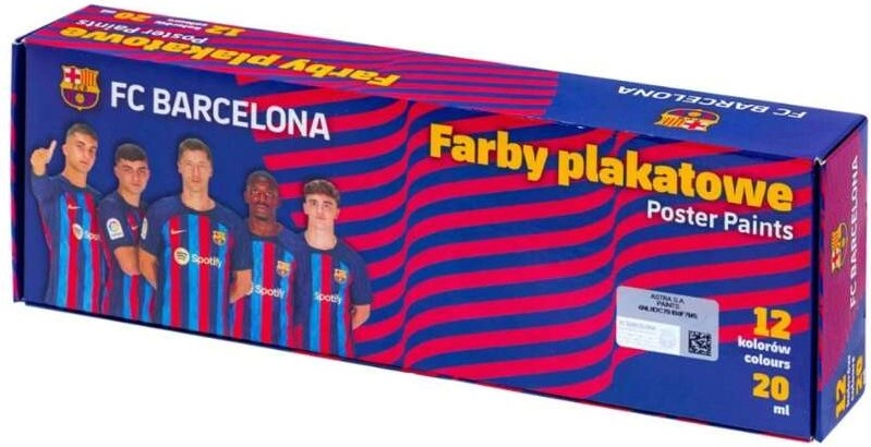 Комплект темперни бои ASTRA с мотив FC BARCELONA предлага 12×20 ml ярки нюанса в пластмасови чашки с капаче. Бои с водна разредимост, лесни за смесване и почистване, с висока покривност и матов финиш след изсъхване – идеални за училищно и домашно творчество върху хартия.
